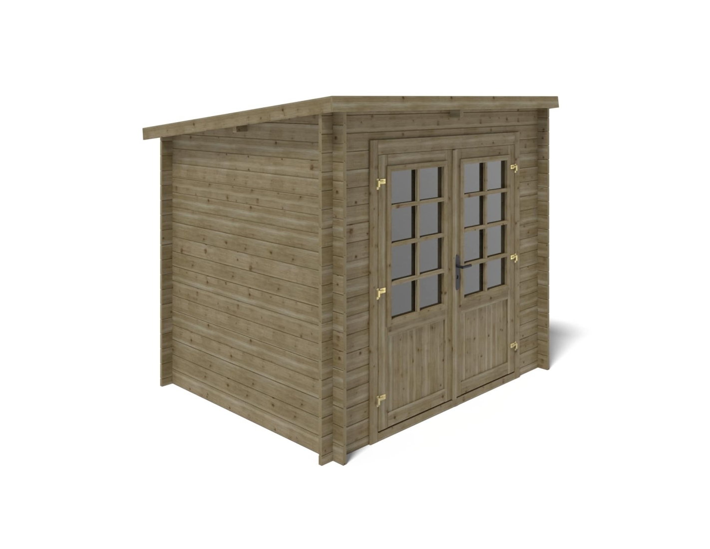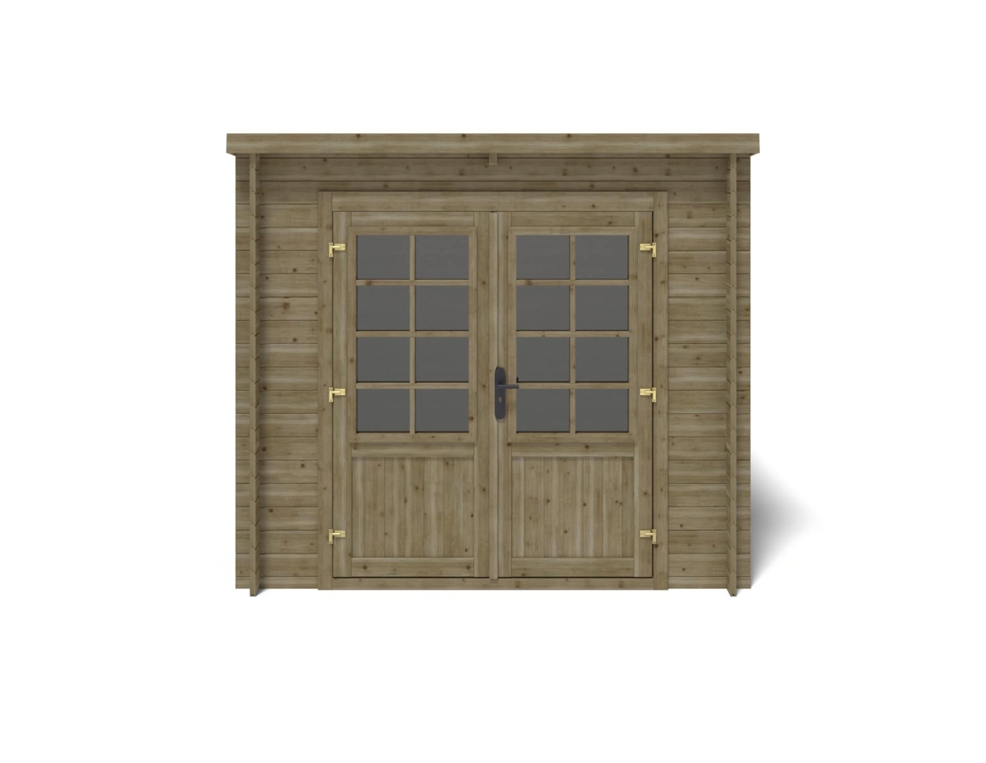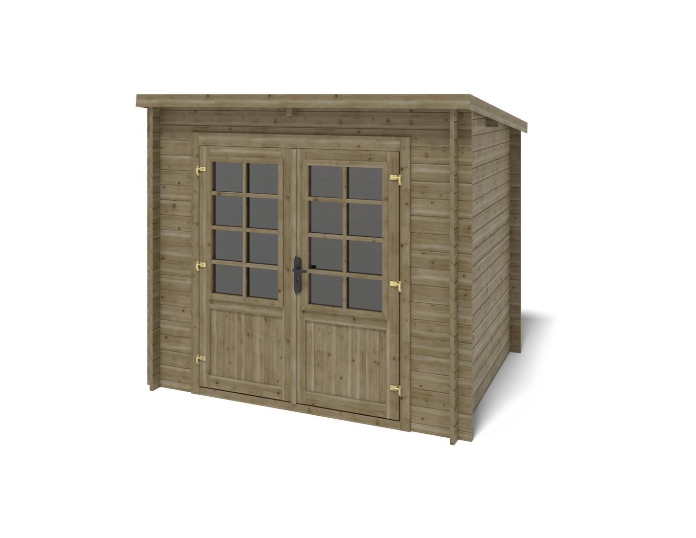 Abri de jardin en bois DOM725 de ALTANKA p.s.a. est fait de bois de haute qualité. Les dimensions sont suivantes : 2.5m de large et 2m de profondeur.
