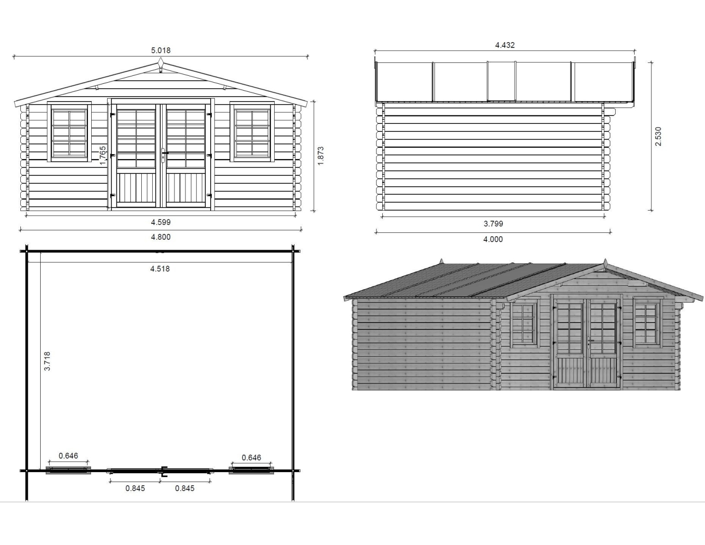 - Type de toit: toit à deux pentes
