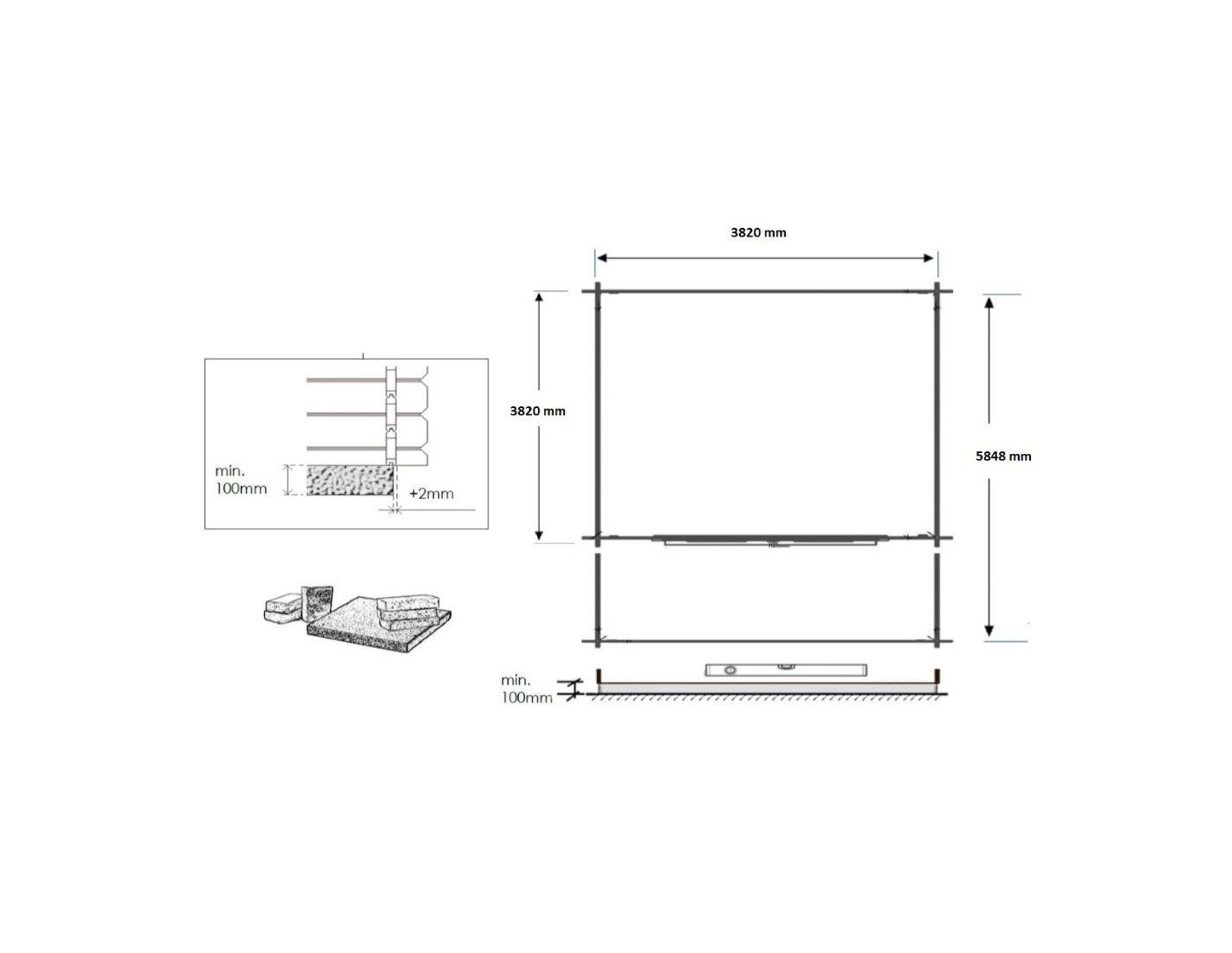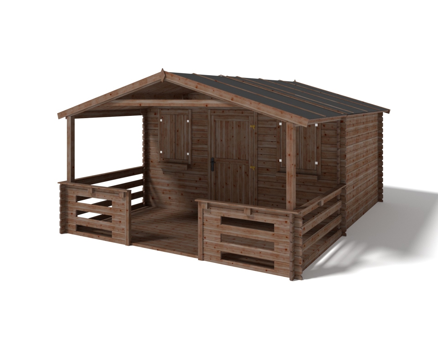 Abri + terrasse et avant-toit - abri d'une superficie de 24 m2, une largeur de façade de 4 m, une profondeur de 4 m et une épaisseur de parois de 28 mm.