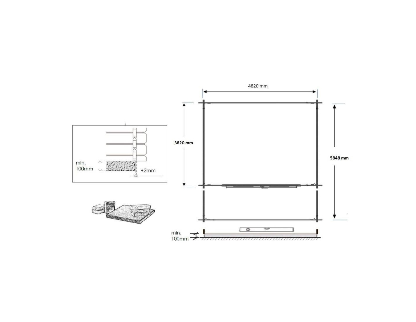 Abri + terrasse et avant-toit - abri d'une superficie de 30 m2, une largeur de façade de 5 m, une profondeur de 4 m et une épaisseur de parois de 28 mm.