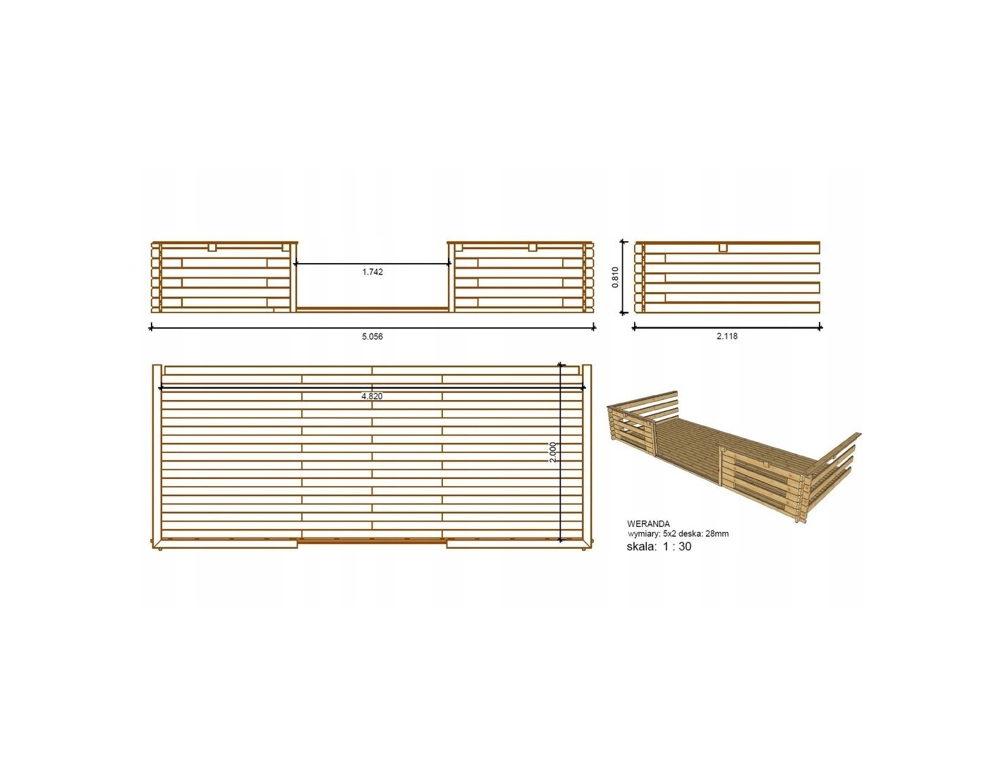 - terrase (avec balustrade et plancher + avant-toit)