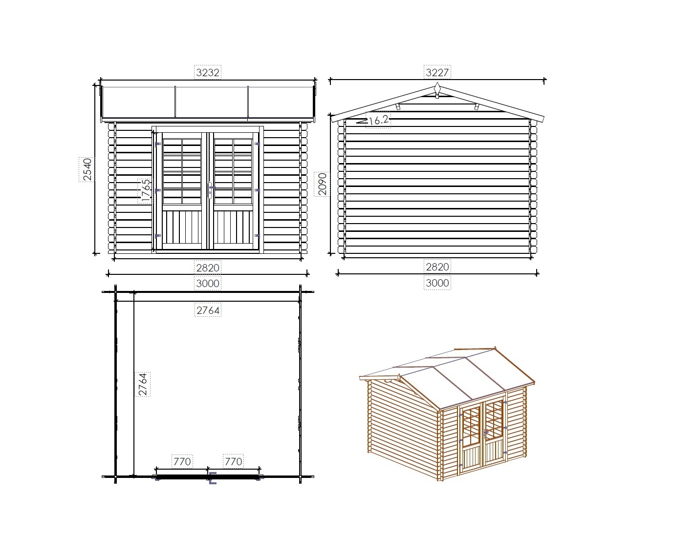 L'abri de jardin est fait d’un bois d'épicéa séché. Peut contenir des éléments collés (par exemple, des planches aboutées).