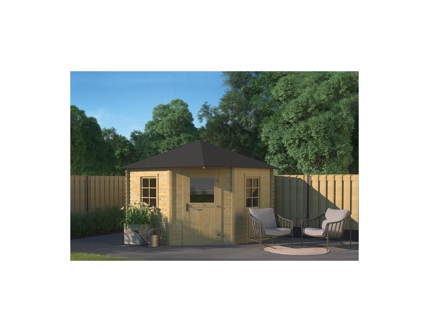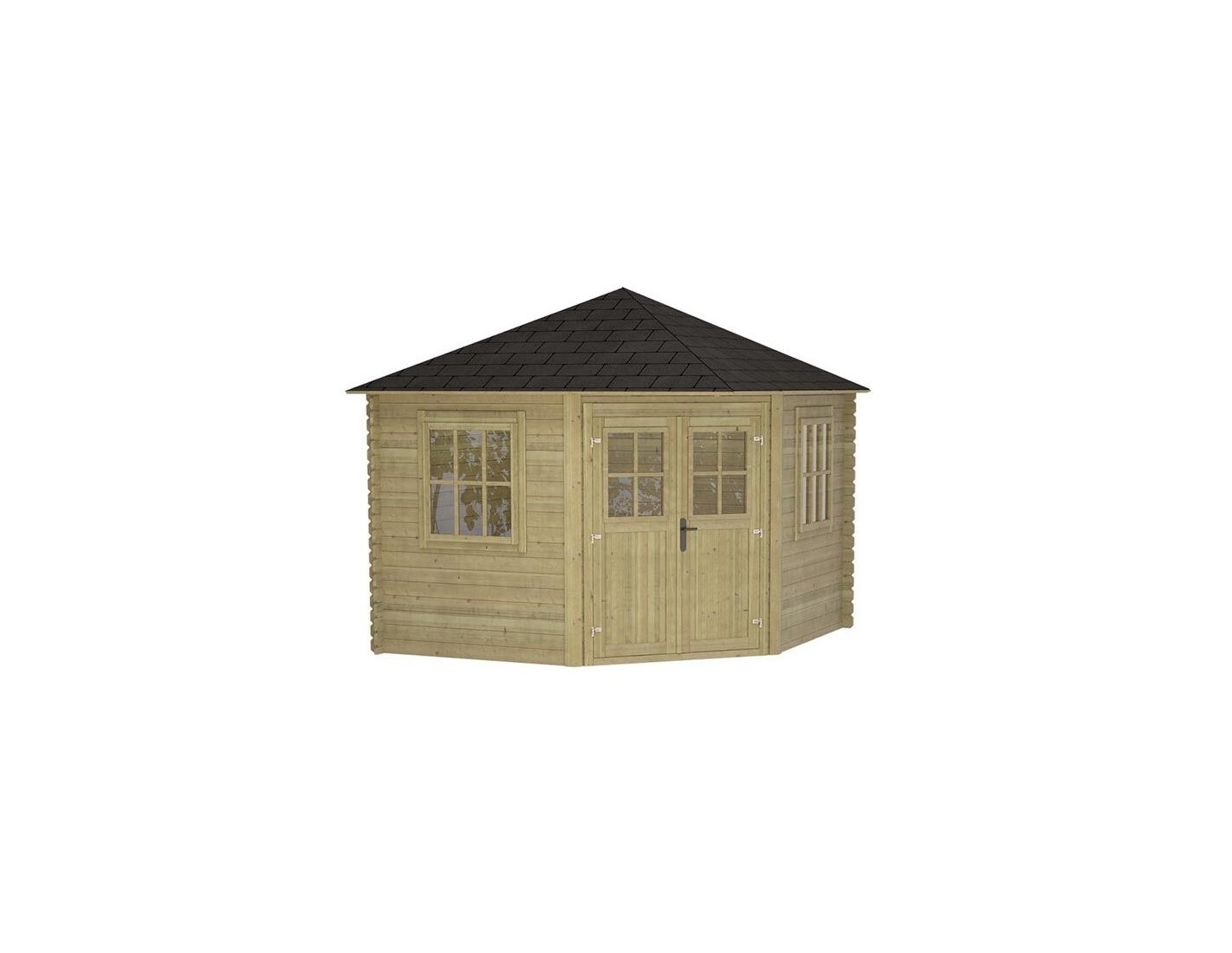 L'intérieur de l’abri est une forme régulière ce qui permet des aménagements libres, adaptatées aux besoins individuels. Cet abri de jardin est l'endroit idéal pour les réunions familiales, un atelier ou un lieu de détente. C'est aussi une proposition excellente pour les enfants qui rêvent d'avoir leur propre espace de jeux.
