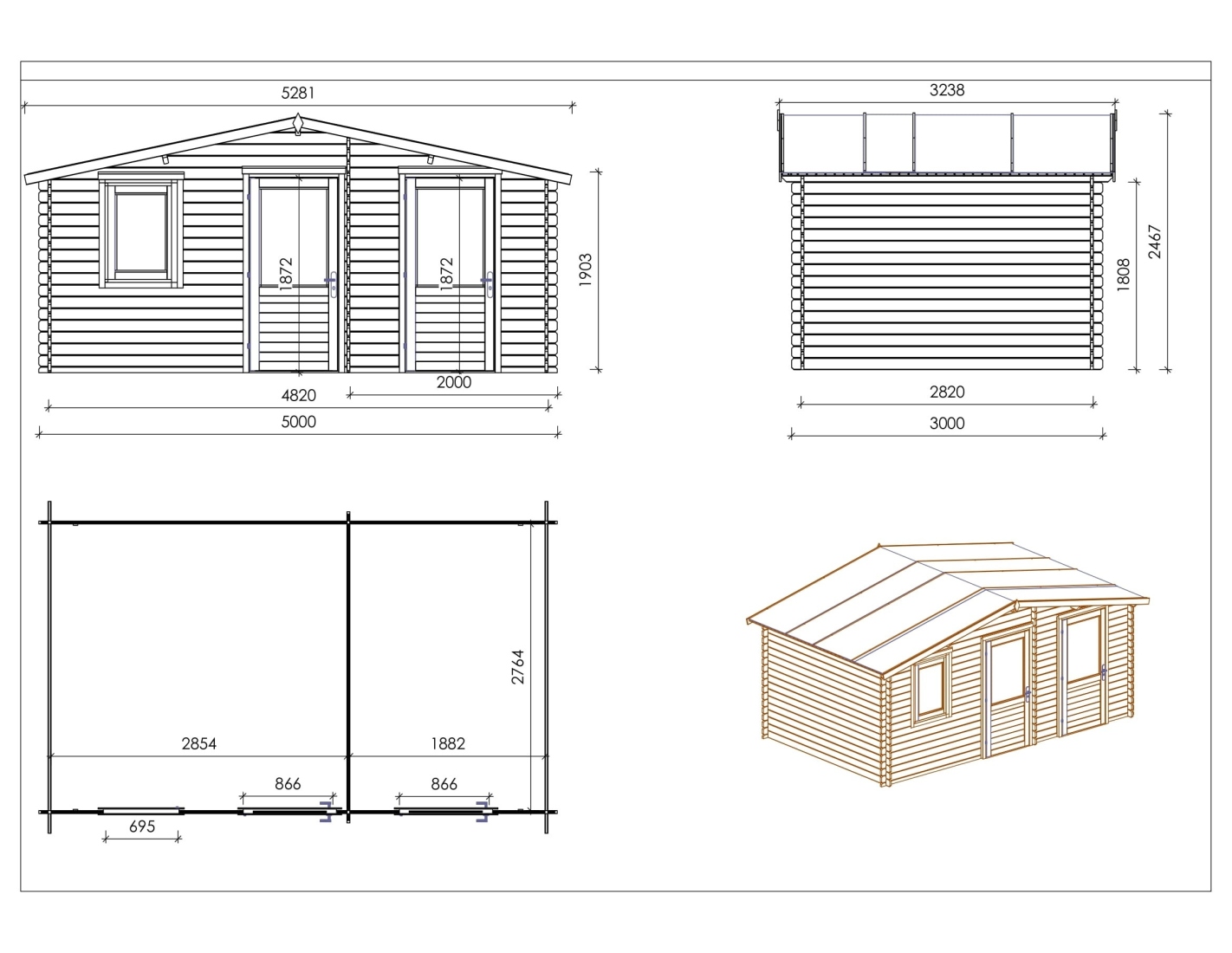 - Type de toit: toit à deux pentes