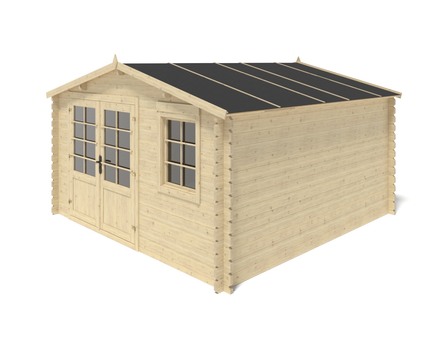 Abri de jardin en bois - 15.21m2 - 3.9x3.9m - Ep. 40mm - Couleur: naturel
