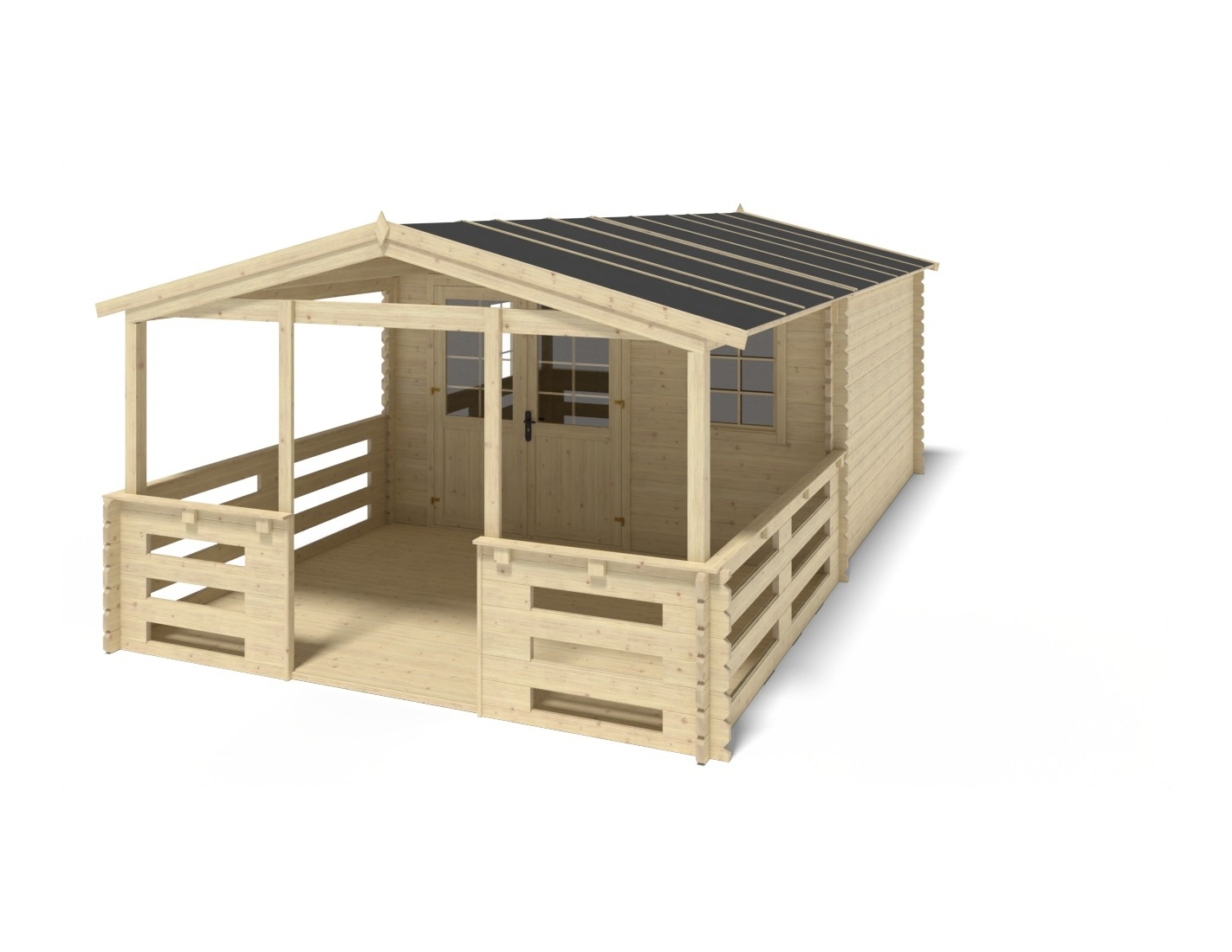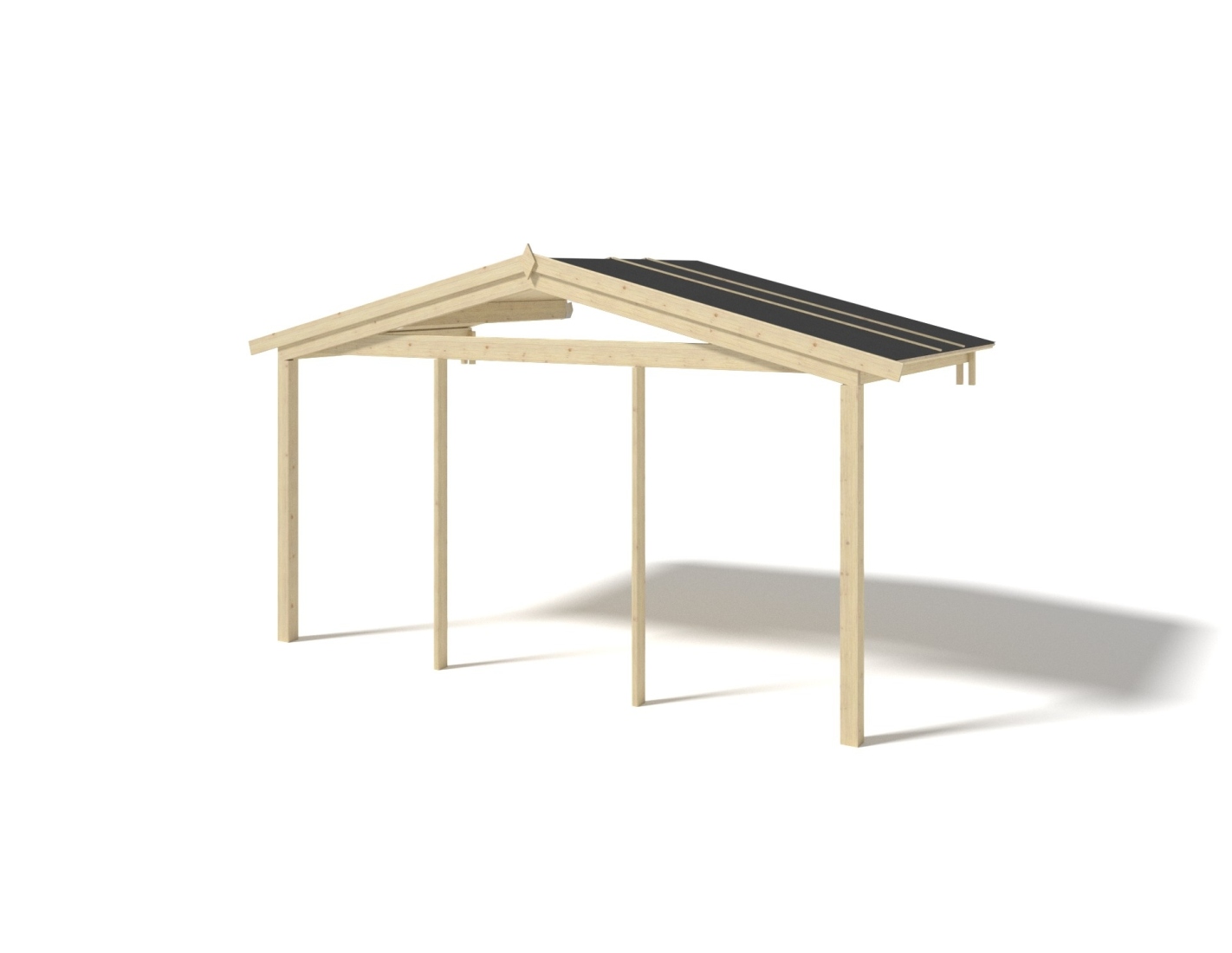 Notre avant-toit offre une excellente protection contre le soleil brûlant, la pluie, la neige, la grêle et autres précipitations, avec une largeur de 4 m en façade et une profondeur de 3 m (surface : 12 m2). Cela convient aux abris en bois avec un toit à pignon et une largeur en façade de 4 m, fabriqués en planches paroi de 40 mm d'épaisseur, disponibles dans notre magasin.