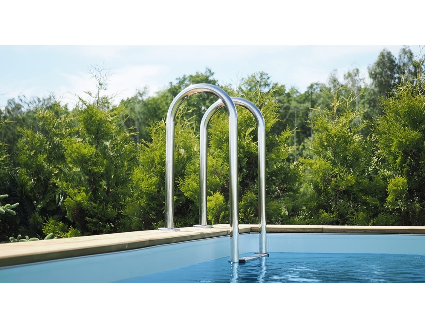 - échelle extérieure en bois, pouvant être retirée lorsque la piscine n'est pas utilisée