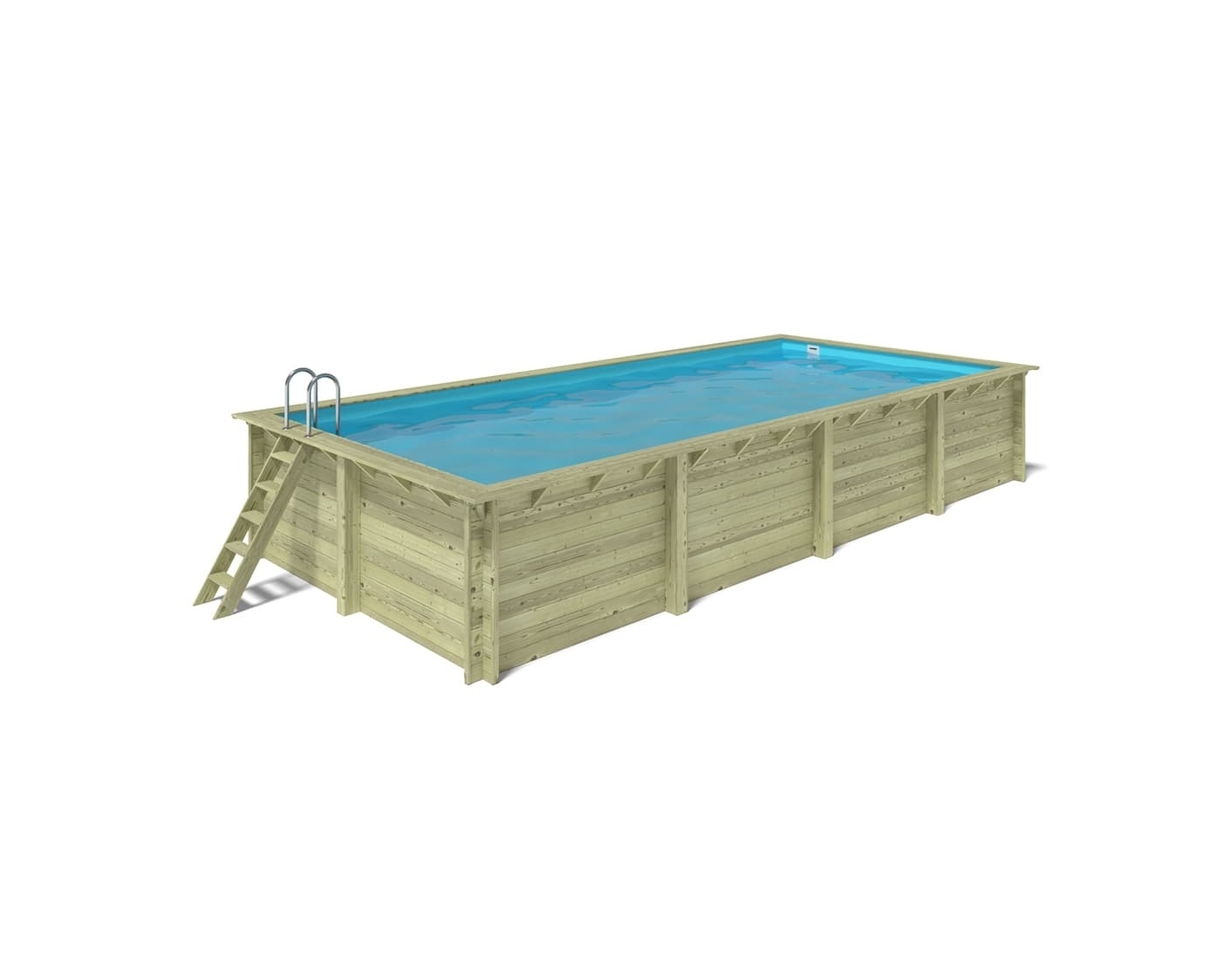 Découvrez notre piscine en bois de dimensions 8.5 m x 4.35 m et d'une hauteur de 1.45 m, fabriquée en bois de pin, imprégnée dans la couleur vert. L'épaisseur des planches est de 44 mm (+/- 1mm), garantissant une construction très solide pour la piscine. L'épaisseur des planches de terrasse est de 28 mm.