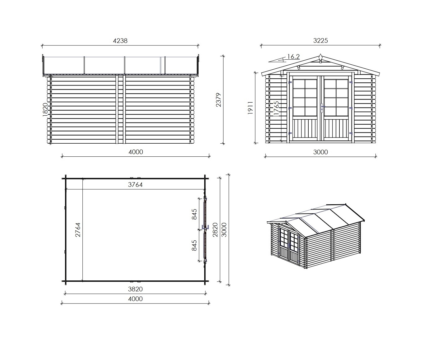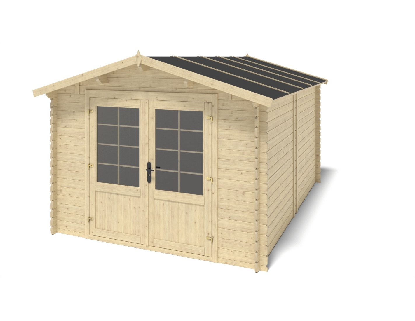 Chalet de jardin en bois DOM661 de ALTANKA p.s.a. est fait de bois de haute qualité. Les dimensions sont suivantes : 3m de large et 4m de profondeur ce que garantie beaucoup d'espace à l'intérieur.