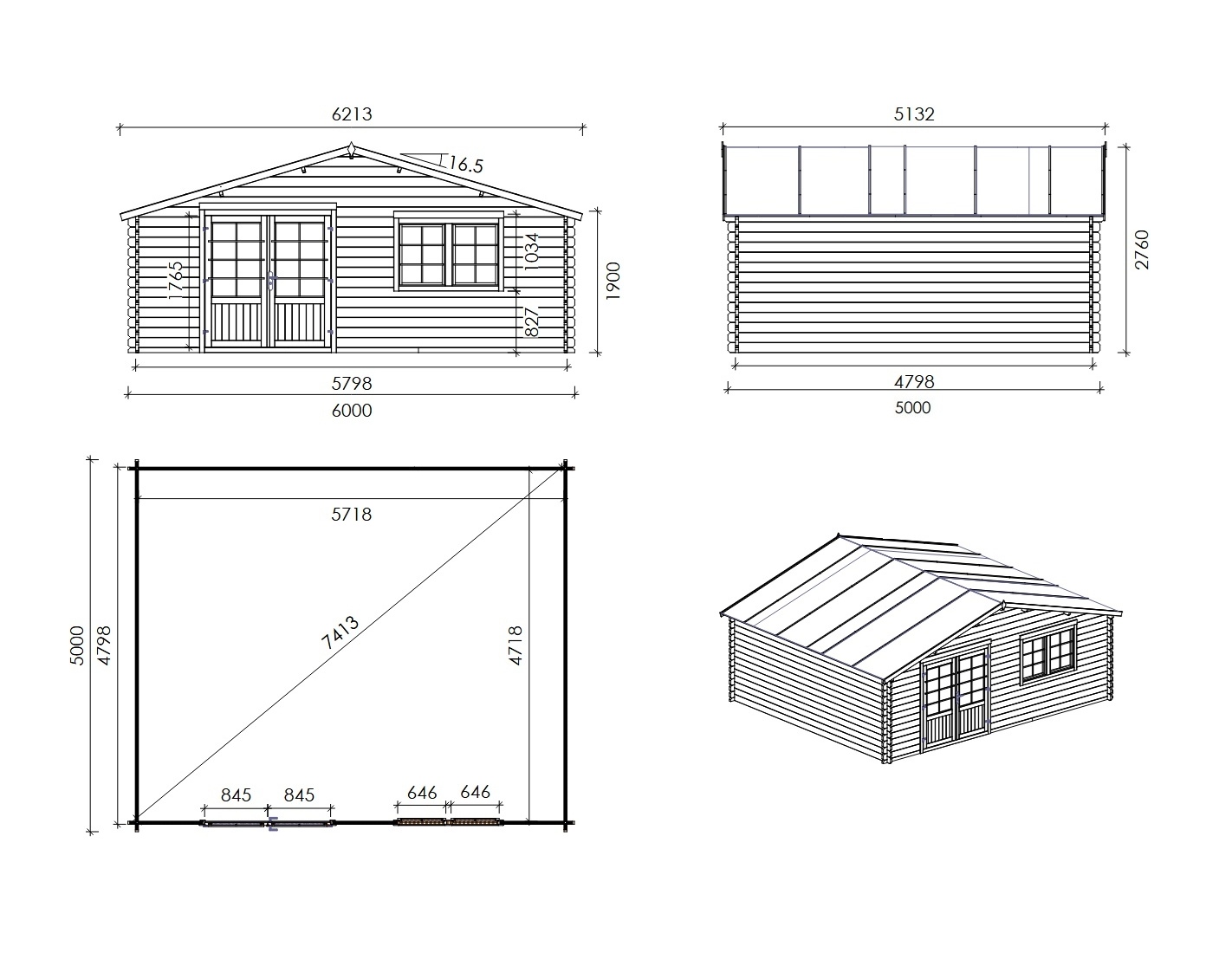 Chalet de jardin en bois DOM748 de ALTANKA p.s.a. est fait de bois de haute qualité. Les dimensions sont suivantes : 6m de large et 5m de profondeur ce que garantie beaucoup d'espace à l'intérieur.