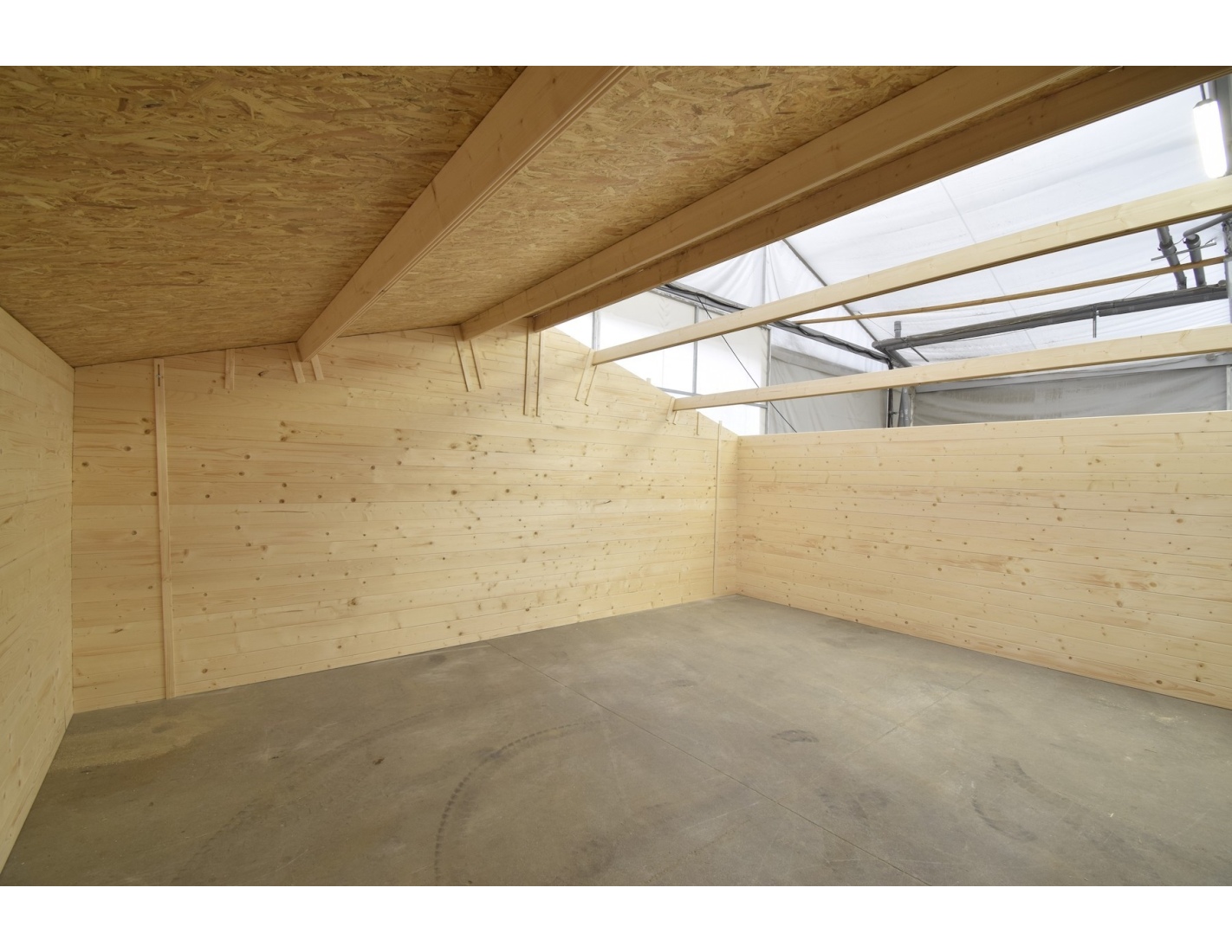 L'intérieur de l’abri est une forme régulière ce qui permet des aménagements libres, adaptatées aux besoins individuels. Cet abri de jardin est l'endroit idéal pour les réunions familiales, un atelier ou un lieu de détente. C'est aussi une proposition excellente pour les enfants qui rêvent d'avoir leur propre espace de jeux.