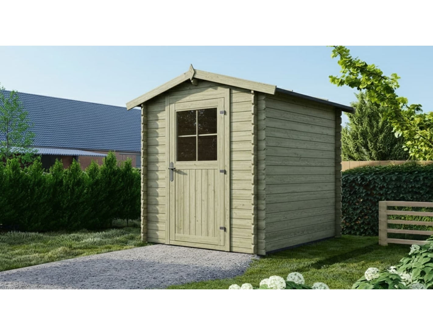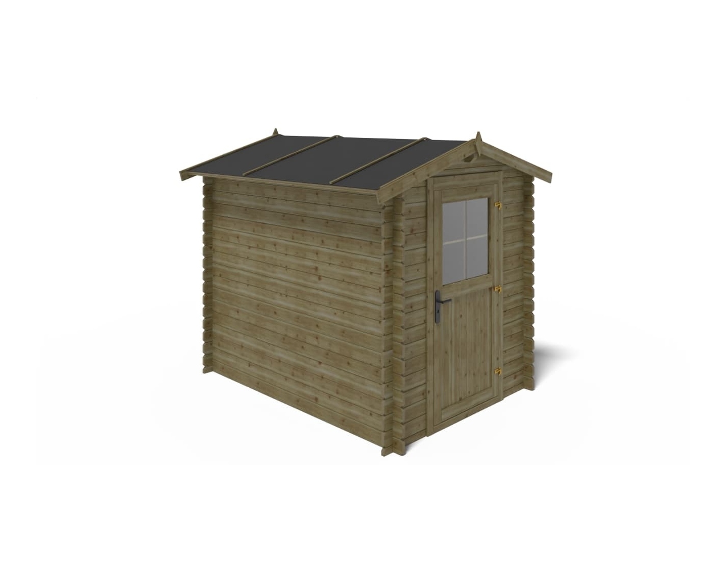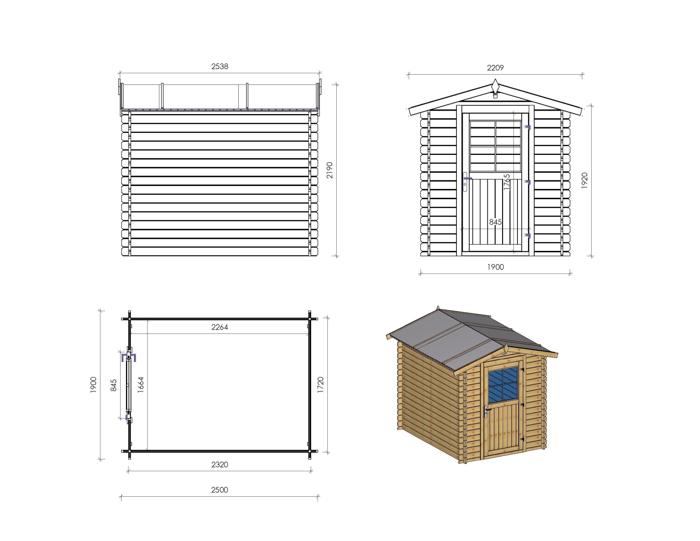 Abri de jardin en bois DOM415 de ALTANKA p.s.a. est fait de bois de haute qualité. Les dimensions sont suivantes : 1.9m de large et 2.5m de profondeur.
