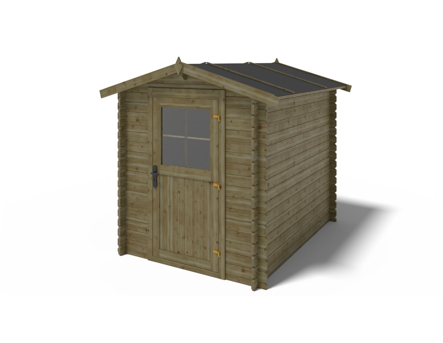 L’abri proposé DOM415 est imprégné dans un autoclave par la méthode sous pression-vide (l'une des plus durables et efficaces). L'imprégnation augmente la résistance du bois aux moisissure, champignons et insectes ce que rend l’abri plus durable. La durabilité d'utilisation (de l'imprégnation) peut aller jusqu'à 15 ans, si seulement on le rafraîchit et entretient avec des produits appropriés selon les besoins, au moins tous les deux ans. Quand même, le bois est un matériau vivant alors il est naturel qu'il fonctionne lorsque les conditions météorologiques changent,(température et humidité). Le changement de la couleur du bois et de sa structure dépendent des conditions dans lesquelles l’abri se trouve et n'affecte pas sa qualité. L’abri est d’une couleur vert, proche du naturel, mais vous pouvez le peindre vous-même en choisissant une couleur différente. Il est recommandé de peindre l'abri à l'intérieur et à l'extérieur.