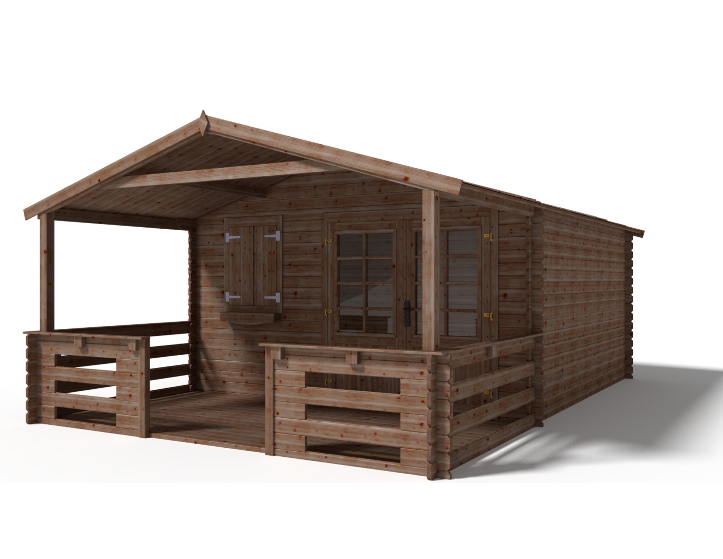 Abri + terrasse et avant-toit - abri d'une superficie de 24 m2, une largeur de façade de 4 m, une profondeur de 4 m et une épaisseur de parois de 28 mm.