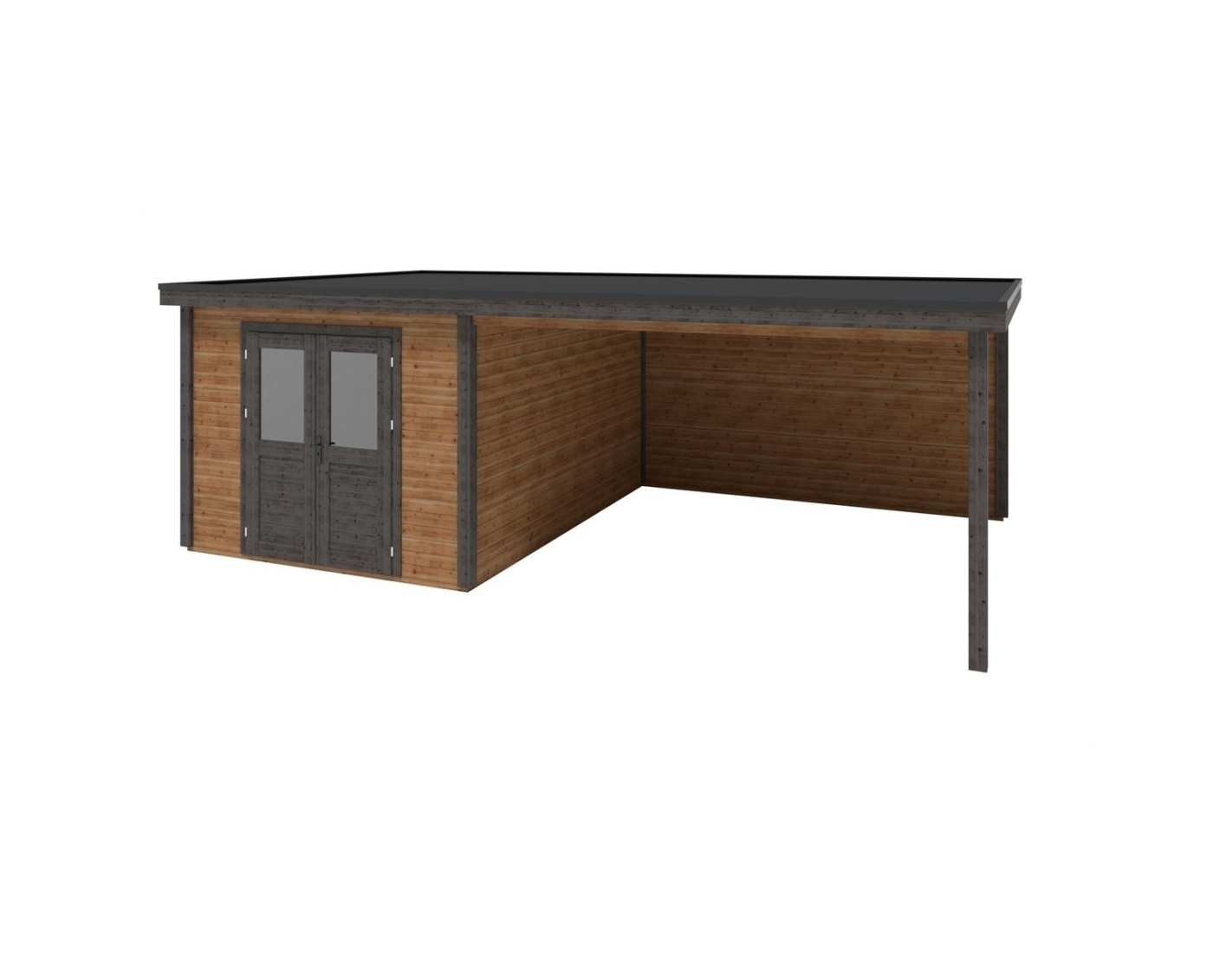(!) Le produit n’inclut pas de couverture de toit ni de système d’évacuation des eaux – il est nécessaire d’acheter une membrane EPDM avec profils de fixation ainsi qu’un tuyau de descente pour évacuer l’eau du toit et assurer une protection contre les intempéries.
