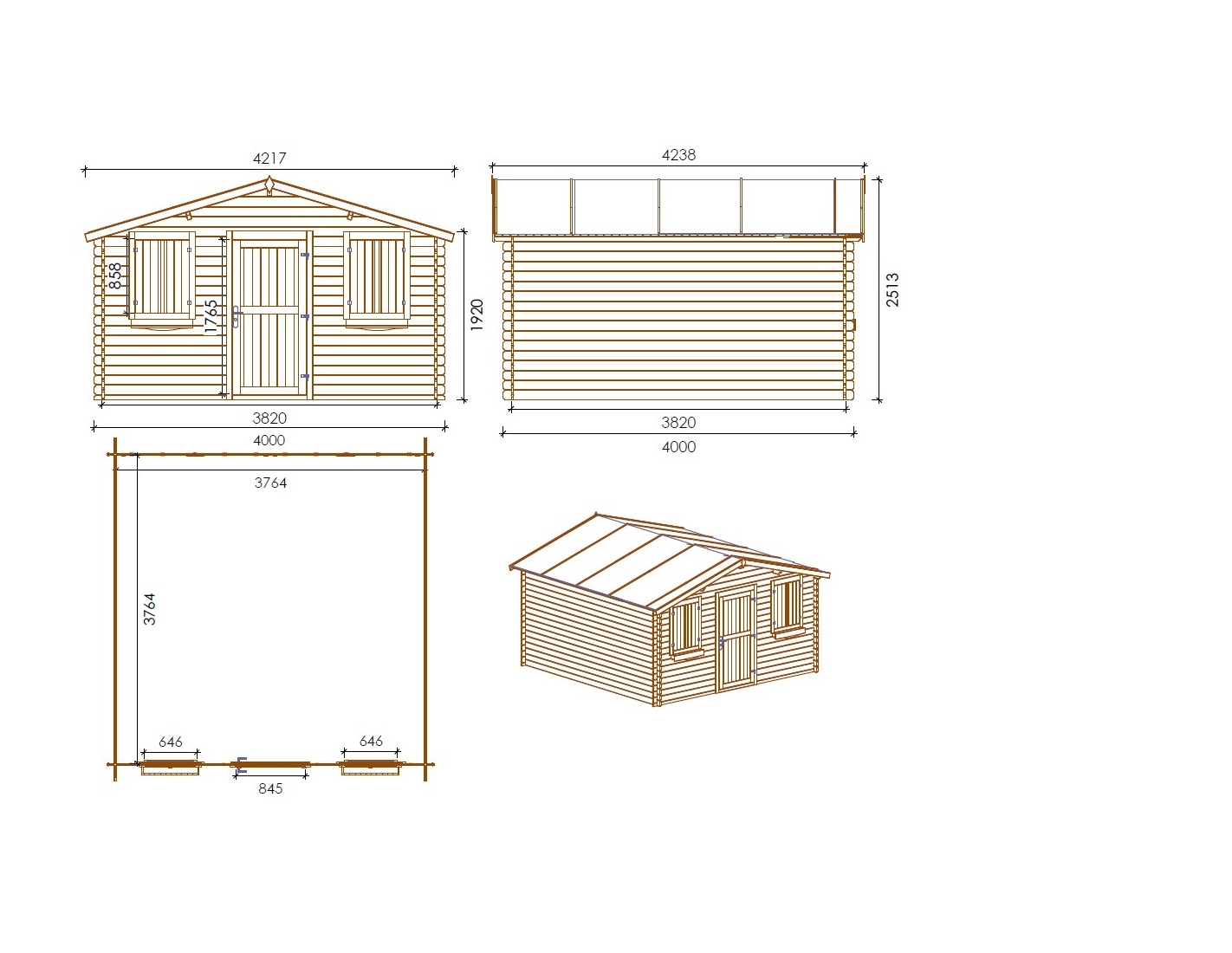 - Type de toit: toit à deux pentes