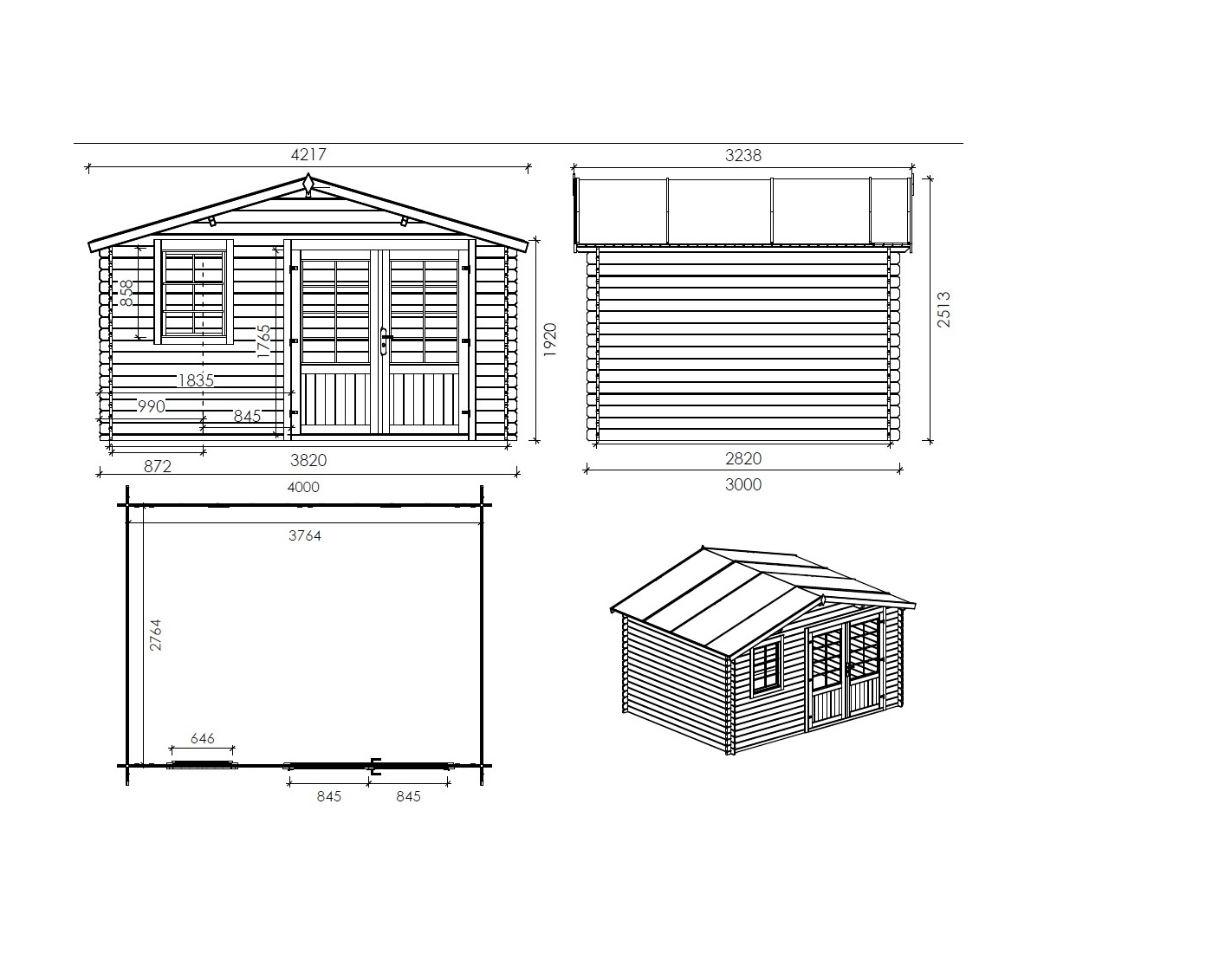 - Type de toit: toit à deux pentes