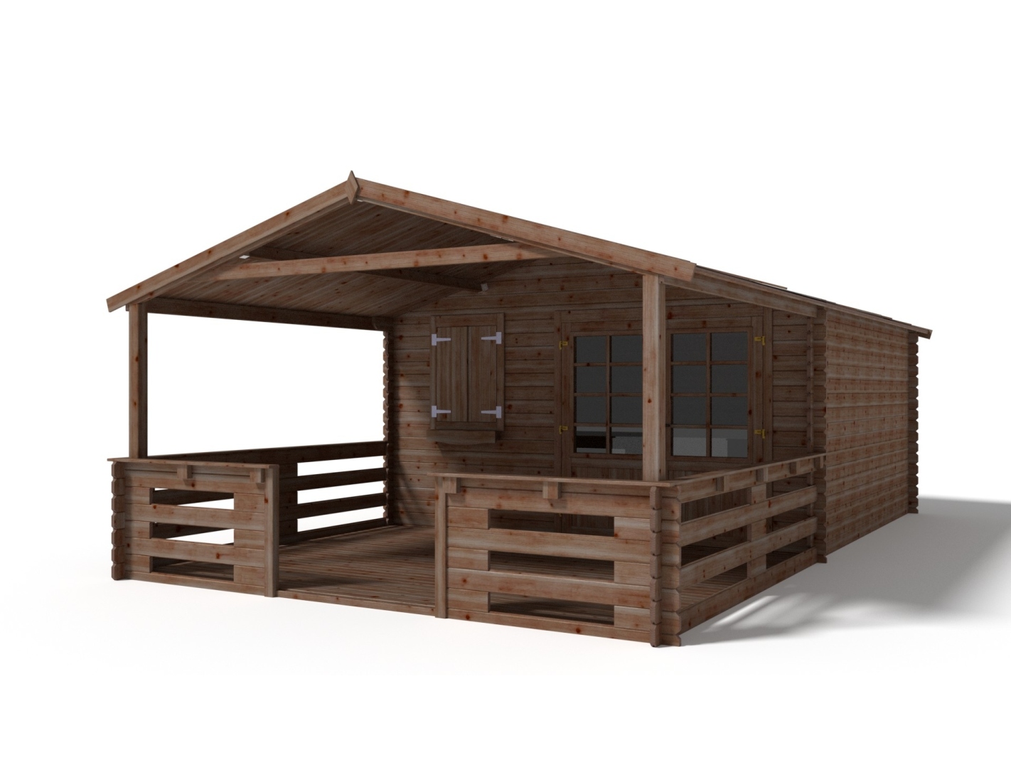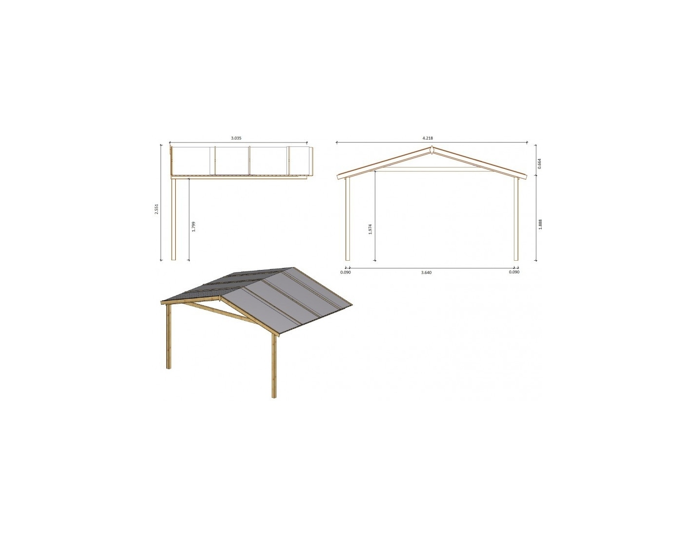 Abri + terrasse et avant-toit - abri d'une superficie de 24 m2, une largeur de façade de 4 m, une profondeur de 3 m et une épaisseur de parois de 28 mm.