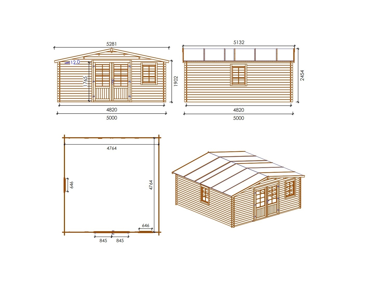 • Type de toit: toit à deux pentes