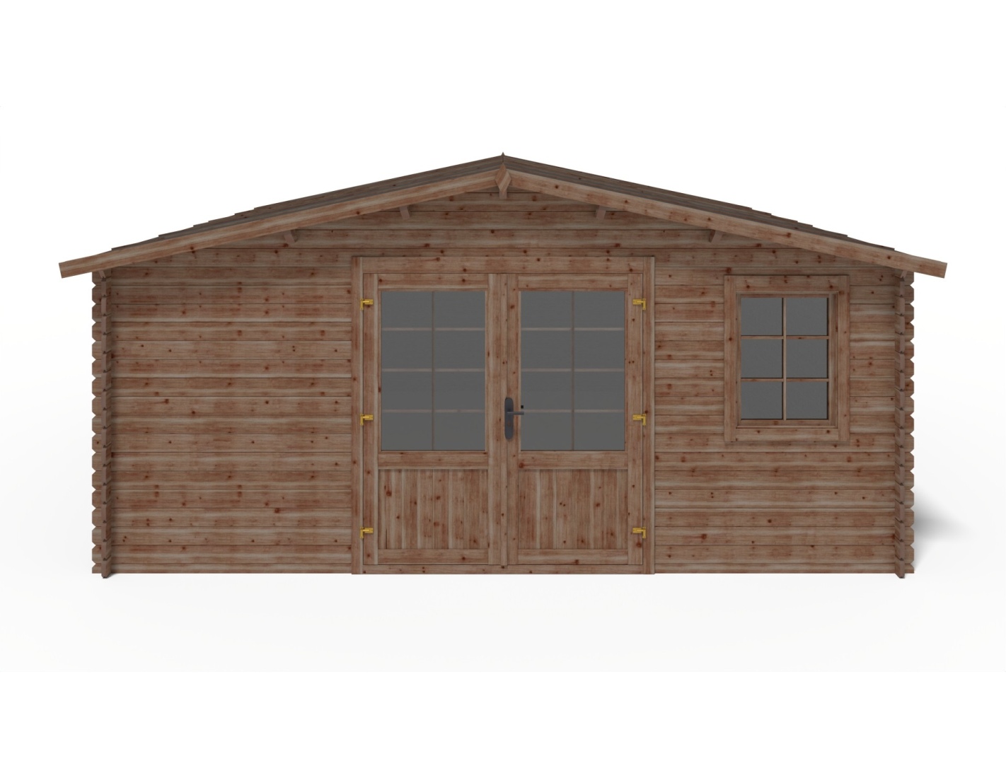 Sur les photos, il y a un chalet en bois DOM596 d'une superficie de 25m2. Dimensions au sol : L 5m et P 5m.