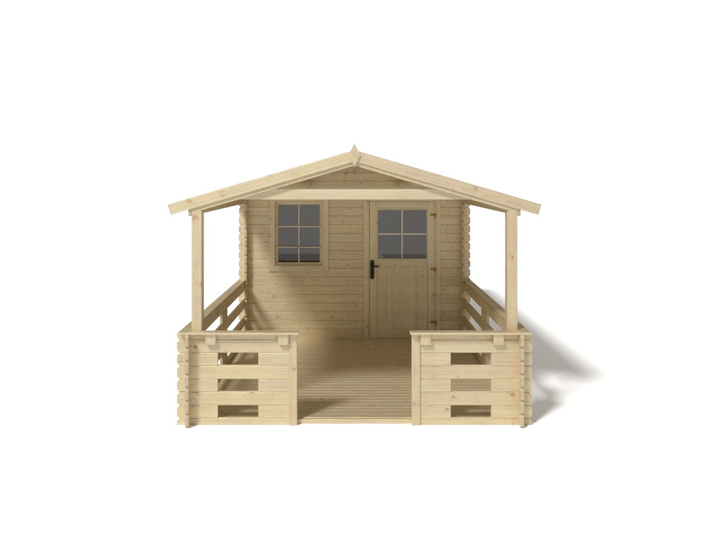 Abri + terrasse et avant-toit - abri d'une superficie de 15 m2, une largeur de façade de 3 m, une profondeur de 2 m et une épaisseur de parois de 28 mm.