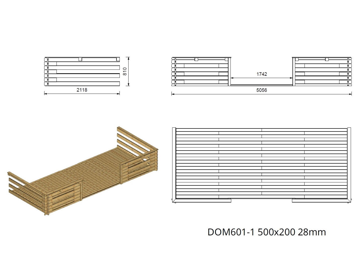 Le modèle DOM638+DOM600+DOM601+POD04 n'est pas imprégné. Il faut le protéger immédiatement avec des produits de protection du bois disponibles sur le marché. L’entretien doit être effectué selon les besoins, mais au moins tous les deux ans. Quand même, le bois est un matériau vivant alors il est naturel qu'il fonctionne lorsque les conditions météorologiques changent (température et humidité). Le changement de la couleur du bois et de sa structure dépendent des conditions dans lesquelles il se trouve et n'affecte pas sa qualité.