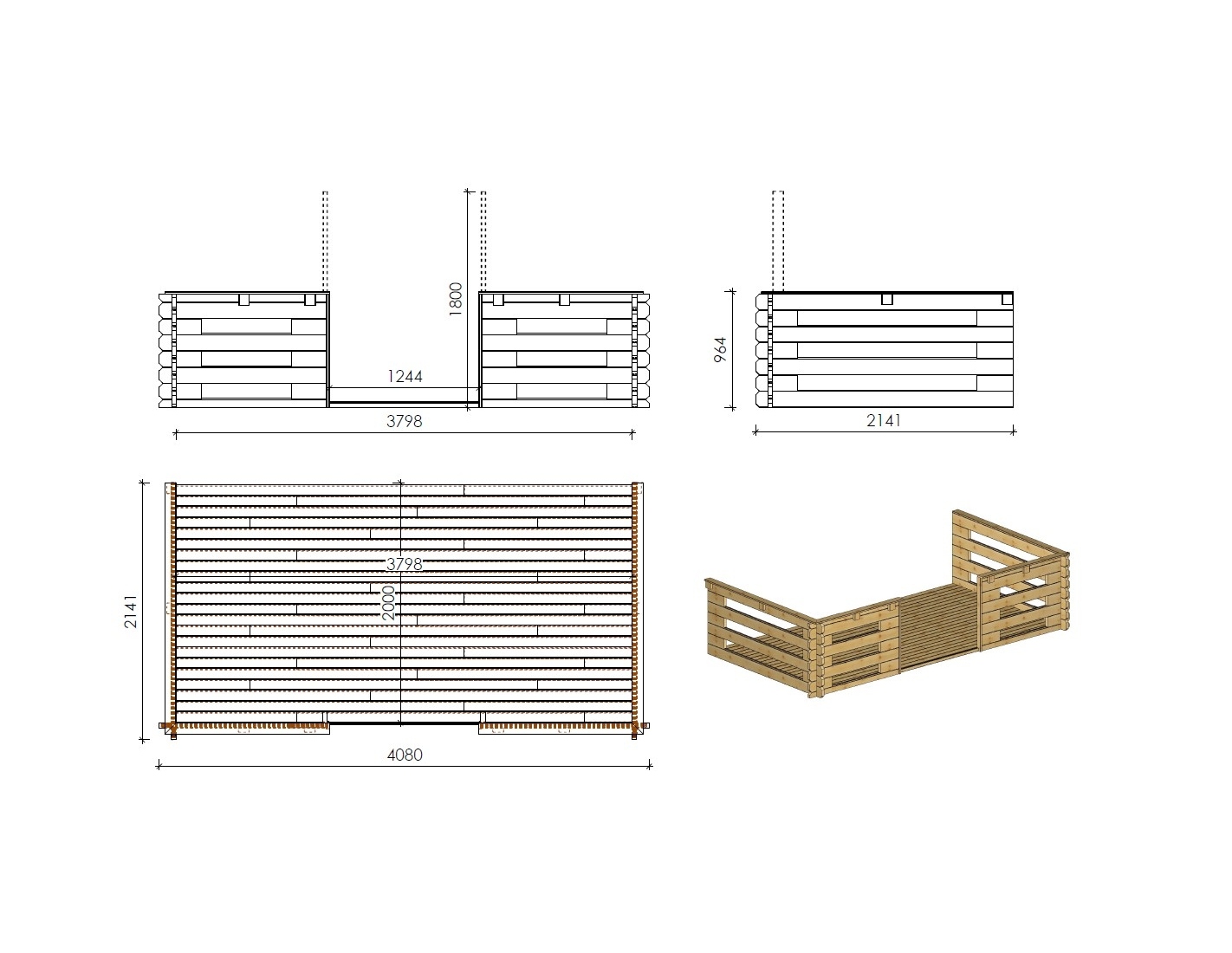 Le modèle DOM371+DOM617+DOM545+POD04 n'est pas imprégné. Il faut le protéger immédiatement avec des produits de protection du bois disponibles sur le marché. L’entretien doit être effectué selon les besoins, mais au moins tous les deux ans. Quand même, le bois est un matériau vivant alors il est naturel qu'il fonctionne lorsque les conditions météorologiques changent (température et humidité). Le changement de la couleur du bois et de sa structure dépendent des conditions dans lesquelles il se trouve et n'affecte pas sa qualité.