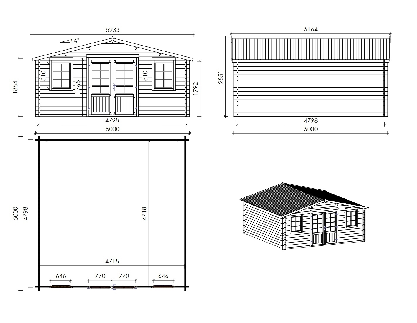 - Type de toit: toit à deux pentes