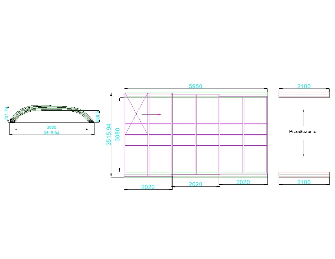 - rails de la longueur de l’abri + rallonge de 2.1 m