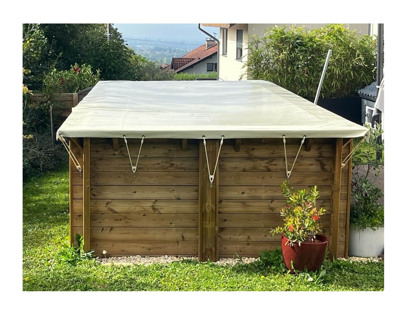 - Installation rapide et fiable – grâce aux sandows Sandowclick et aux œillets inox, la pose est simple et stable.