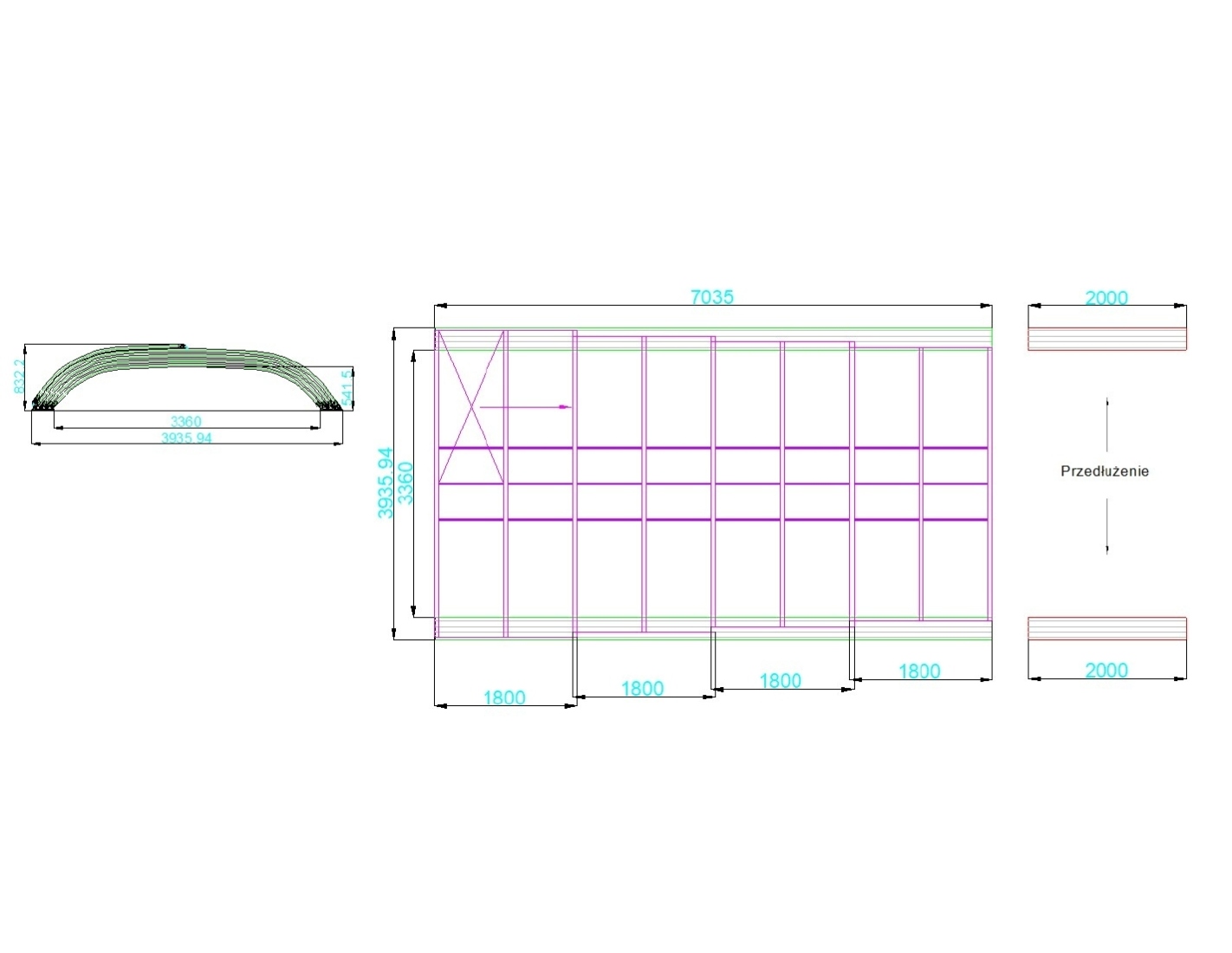 - rails de la longueur de l’abri + rallonge de 2.2 m
