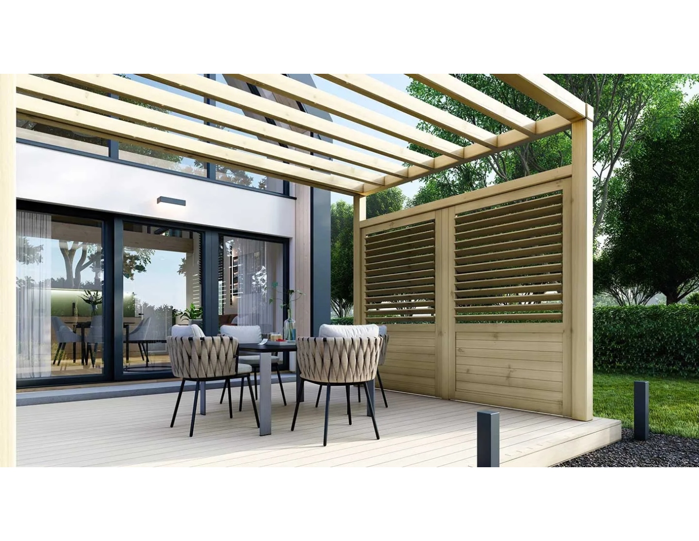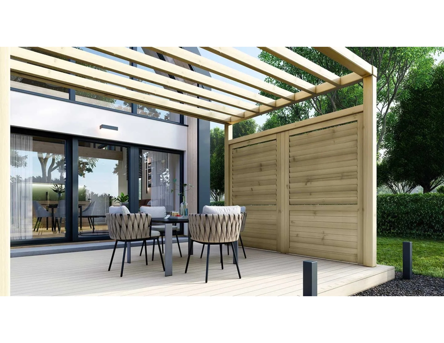 Vous cherchez à donner un caractère unique à votre pergola, abri ou clôture ? Nos panneaux en bois persiennés sont la solution idéale ! Un design simple mais impressionnant qui s’intègre parfaitement dans le paysage naturel de votre jardin et qui apportera une touche élégante et chaleureuse à votre espace.