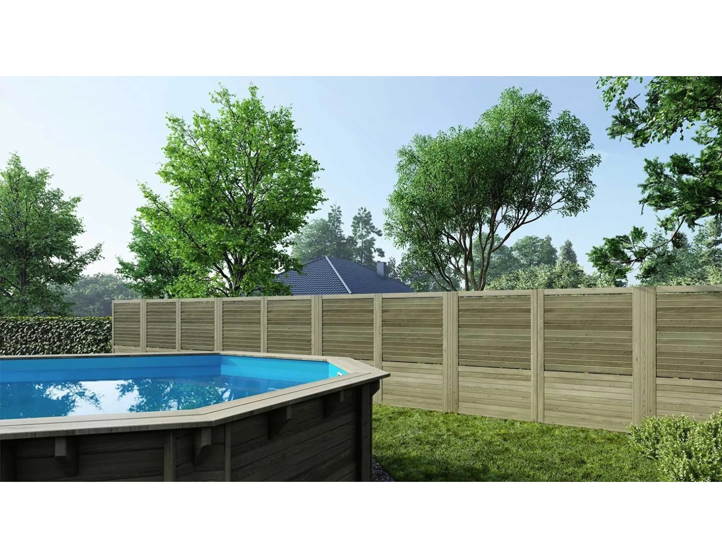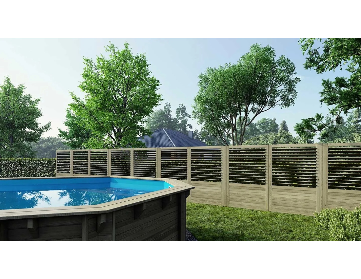 CLÔTURE ÉLÉGANTE ET FONCTIONNELLE POUR VOTRE JARDIN – PANNEAUX EN BOIS PERSIENNÉS. DURABILITÉ ET FABRICATION SOLIDE POUR DES ANNÉES.