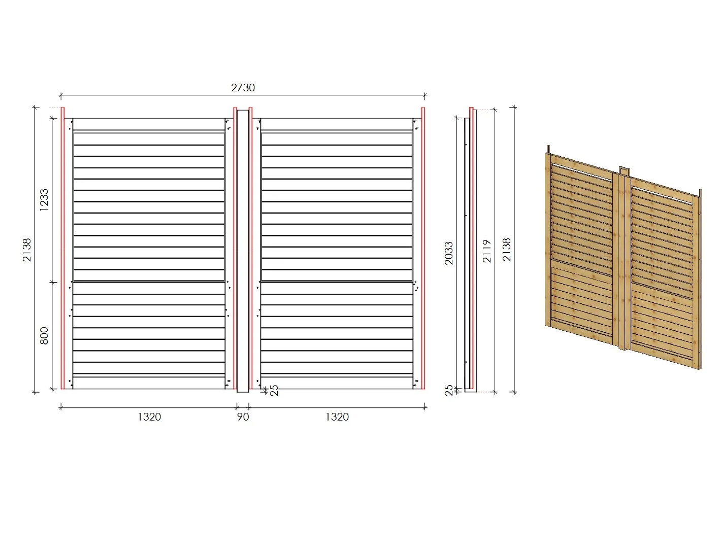 - Épaisseur des poteaux (mm): 90x90