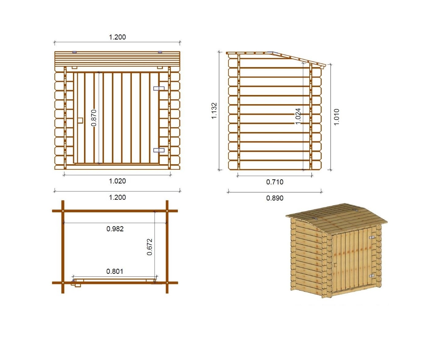 Sur les photos, il y a une armoire de jardin en bois SZA7 Dimensions au sol: 1.2x0.89xH.1.13 m