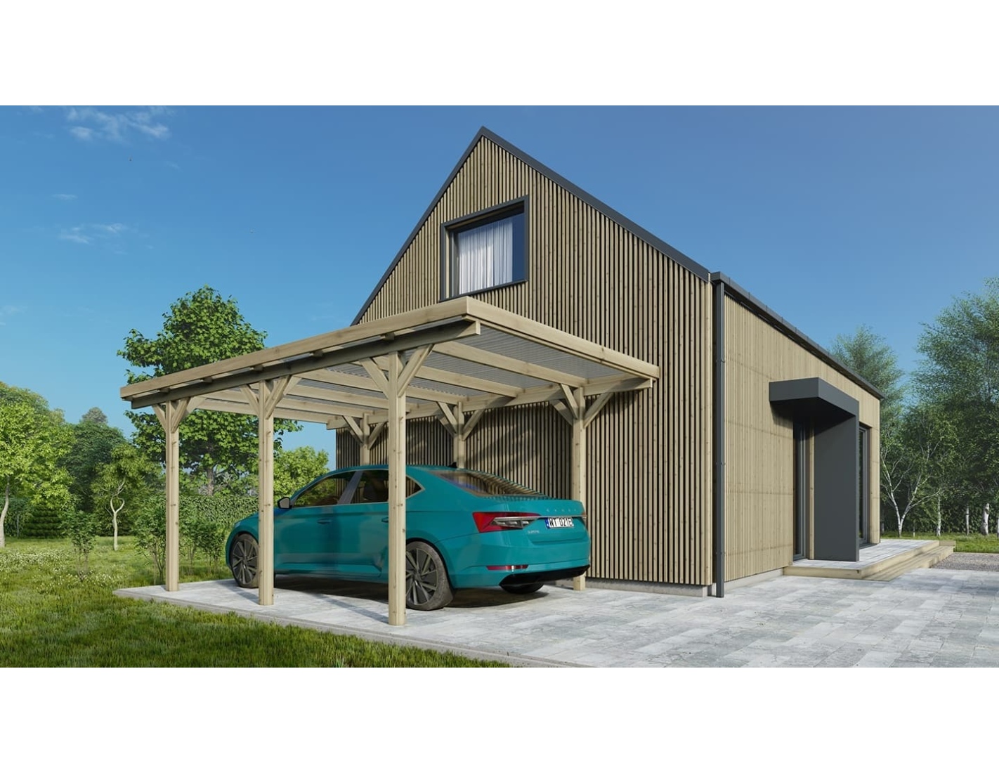 CARPORT, ABRI DE VOITURE EN BOIS CAR16PVCTR - DURABILITÉ PENDANT DES ANNÉES, HAUTE QUALITÉ, PRATIQUE, TRAITÉ