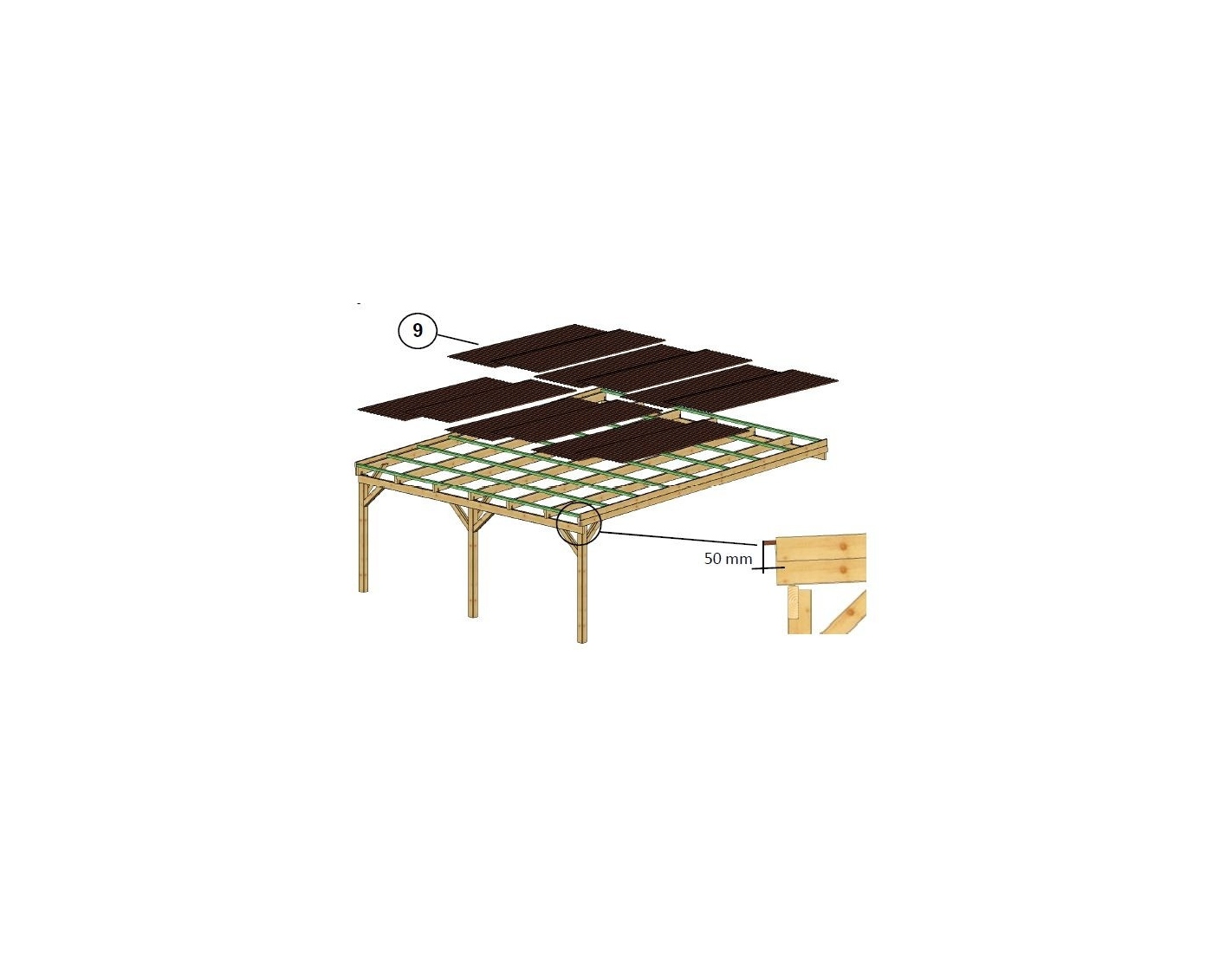 CARPORT, ABRI DE VOITURE EN BOIS CAR23PVCTR - DURABILITÉ PENDANT DES ANNÉES, HAUTE QUALITÉ, PRATIQUE, TRAITÉ
