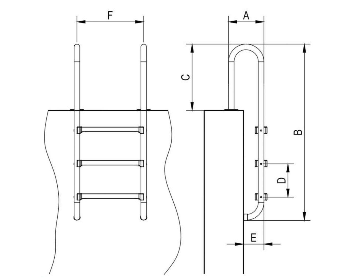 Échelle robuste et sécurisée, fabriquée en acier inoxydable de type 304, résistant aux conditions climatiques et aux produits d'entretient pour piscine.