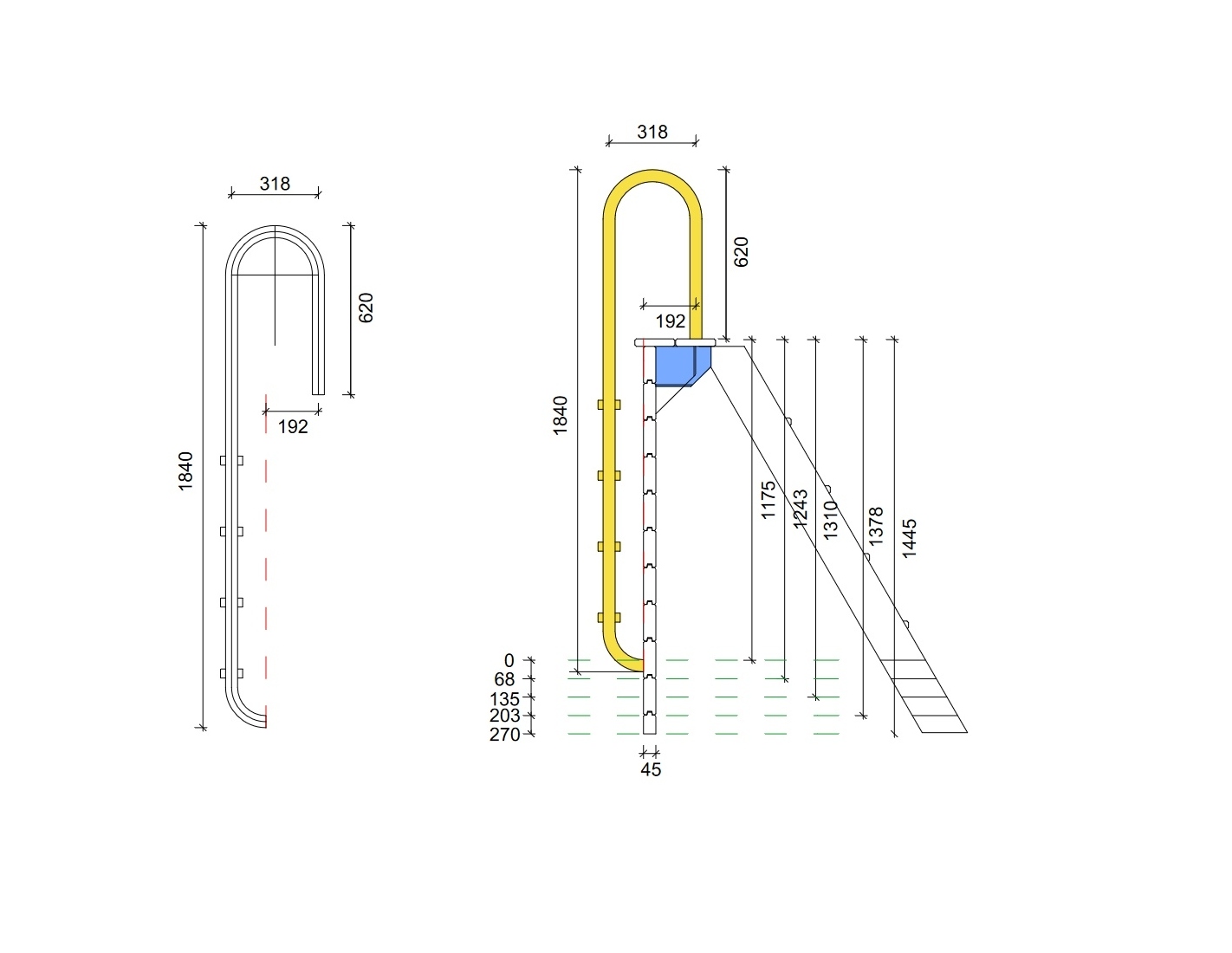 Fabriquée avec des matériaux de haute qualité, l'échelle est résistante à la corrosion, aux produits chimiques et aux conditions météorologiques, garantissant ainsi une longue durée de vie.Elle est équipée de marches antidérapantes et de rampes solides, assurant une stabilité et une sécurité optimales lors de l'entrée et de la sortie de la piscine.