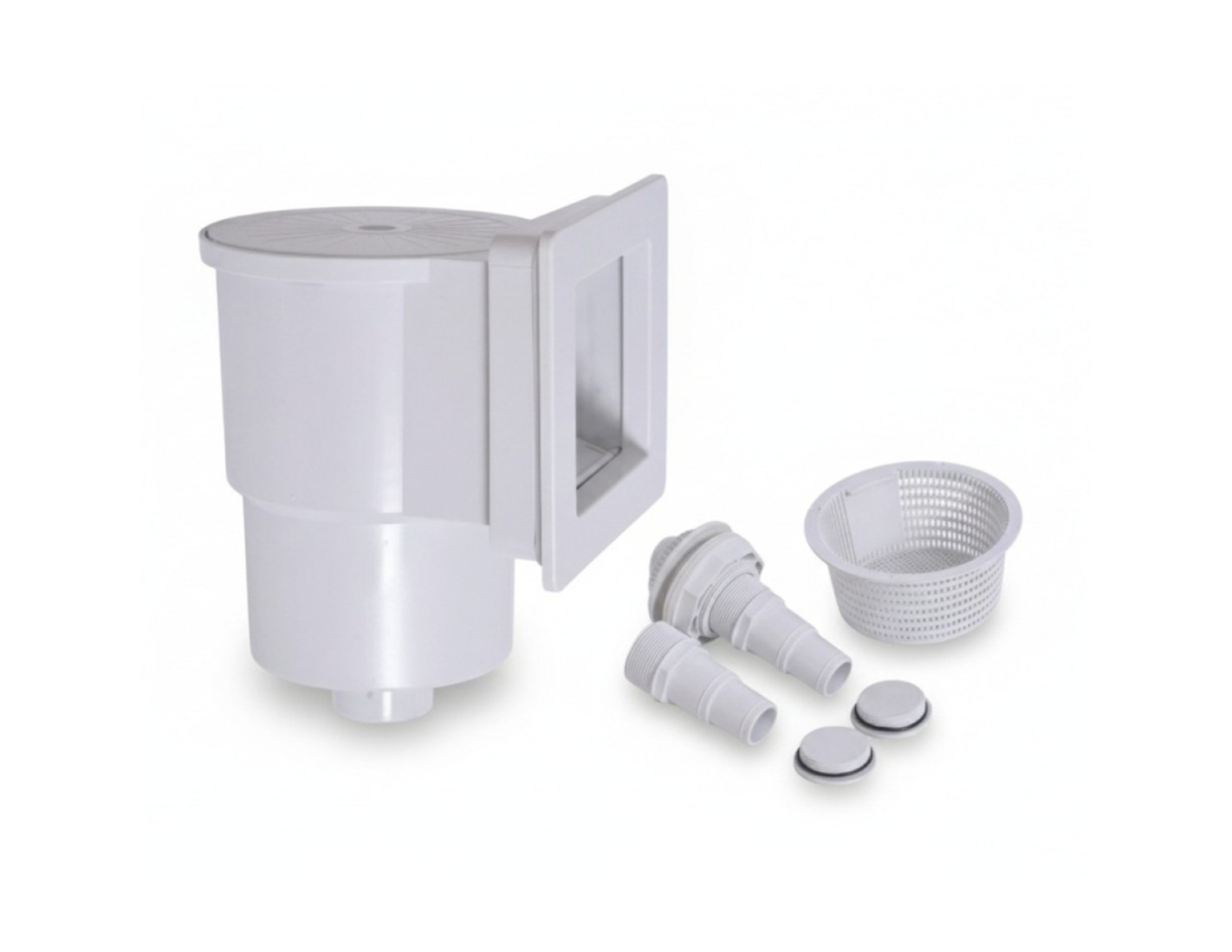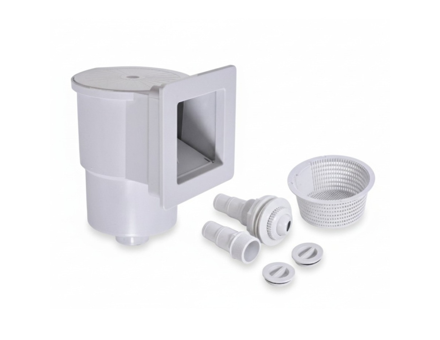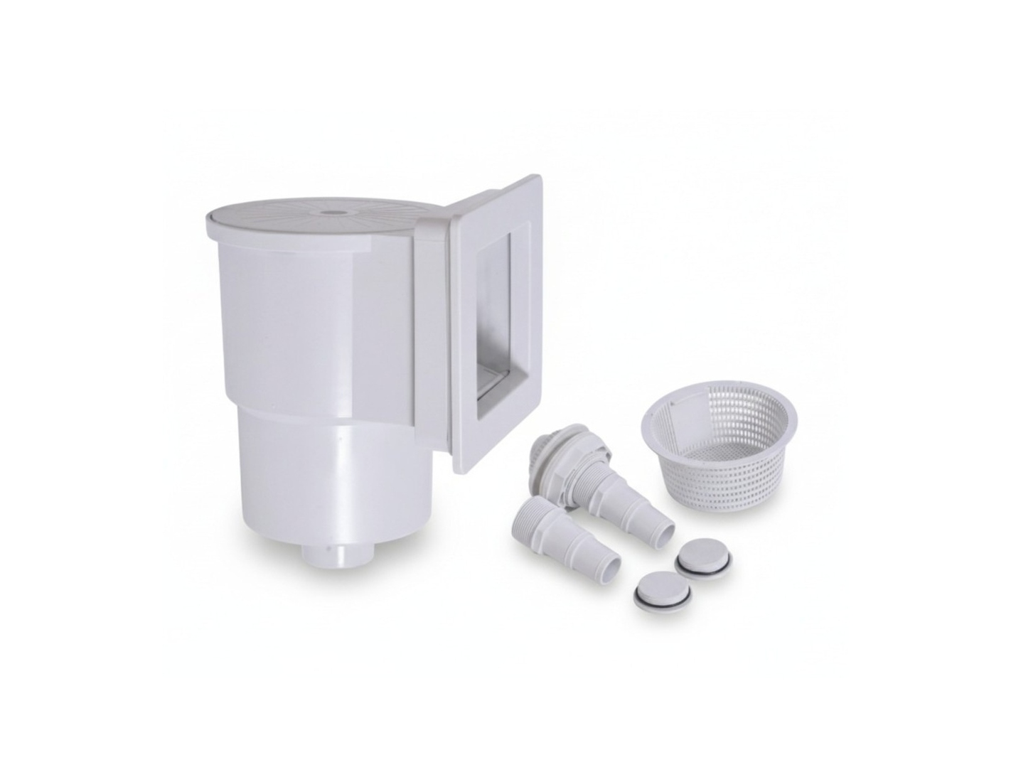 Kit comprenant un skimmer de surface et une buse de refoulement, avec tous les éléments de montage nécessaires. Toutes les pièces sont fabriquées en matériau durable et résistant aux produits d'entretien pour piscine. Compatible avec toutes les piscines en bois de la gamme Altanka.