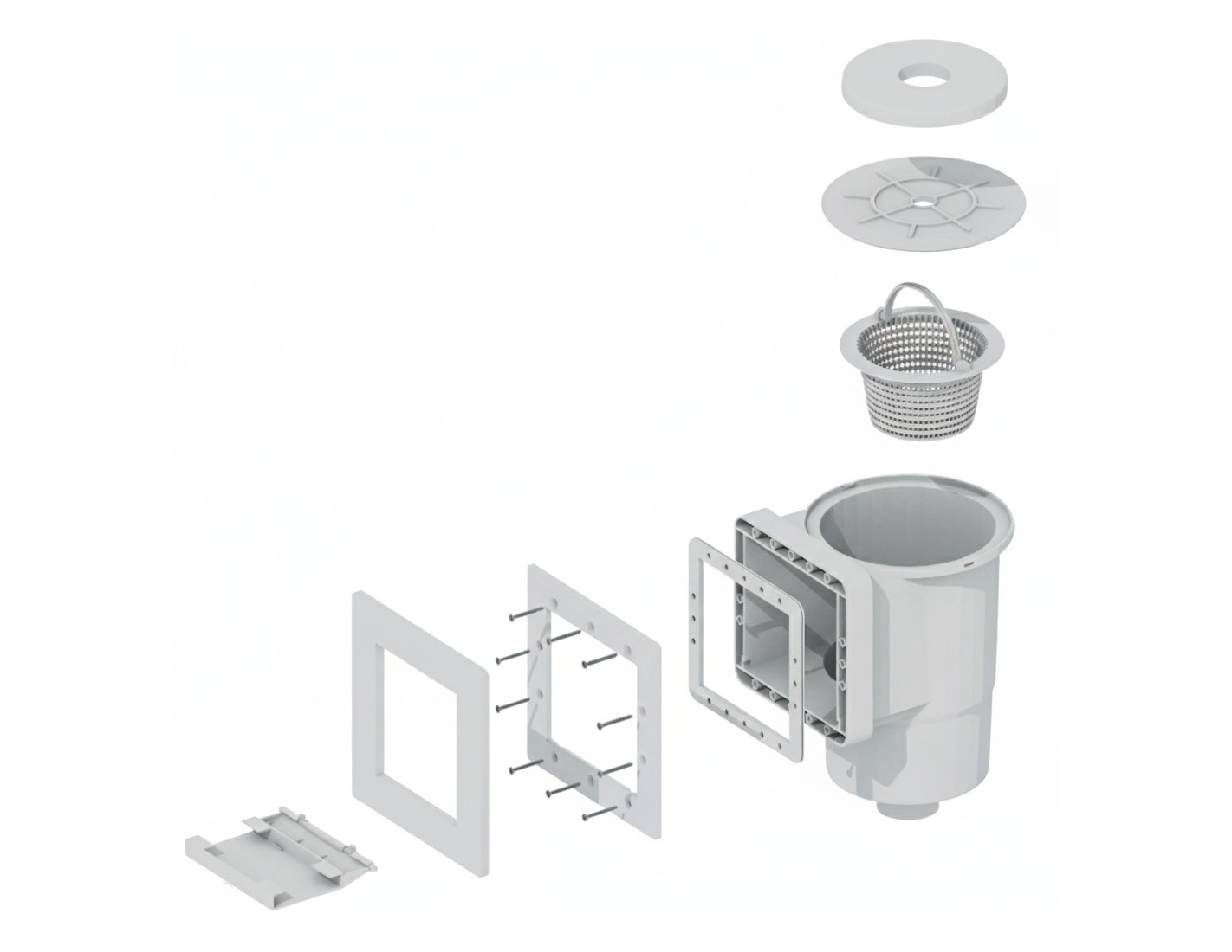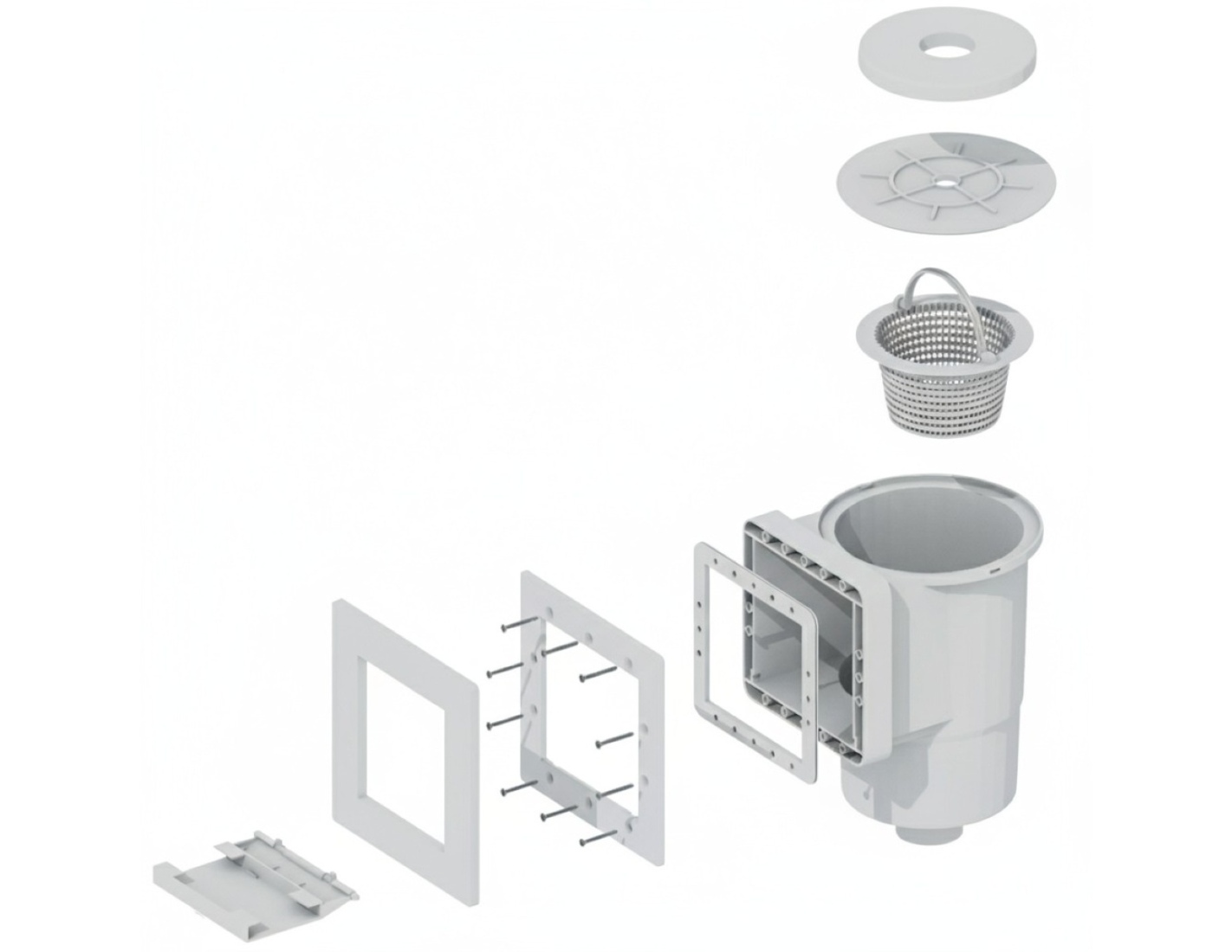 Le skimmer assure le nettoyage de la surface de l’eau – il aspire l’eau et capture les plus grosses impuretés (feuilles, insectes, pollen) avant qu’elles n’atteignent le système de filtration principal. Un clapet intégré empêche les saletés de revenir dans la piscine lorsque la pompe s’arrête.