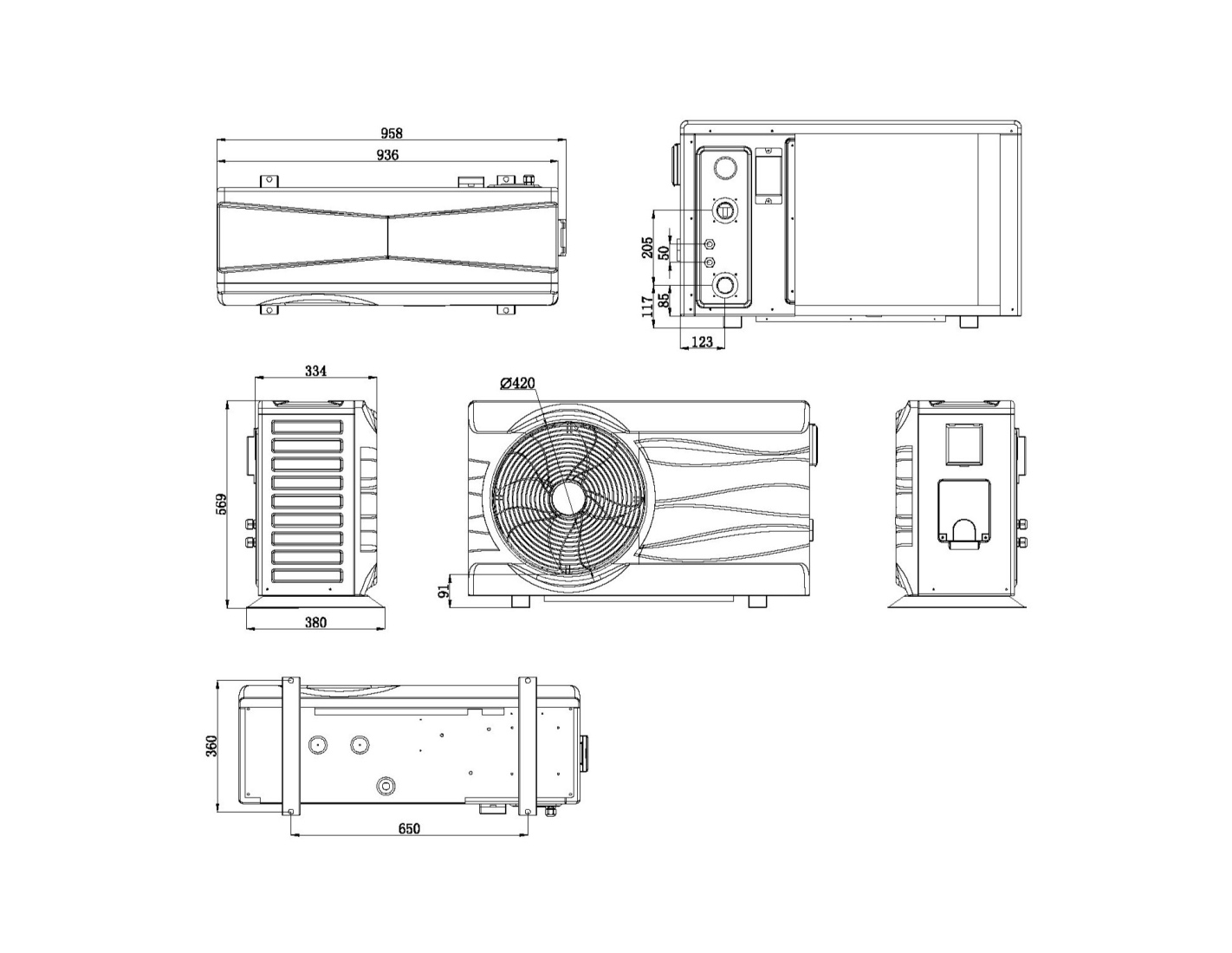 - Équipement inclus : amortisseurs en caoutchouc, raccords d’évacuation du condensat, housse d’hiver, 2 raccords filetés pour tuyau 38 mm