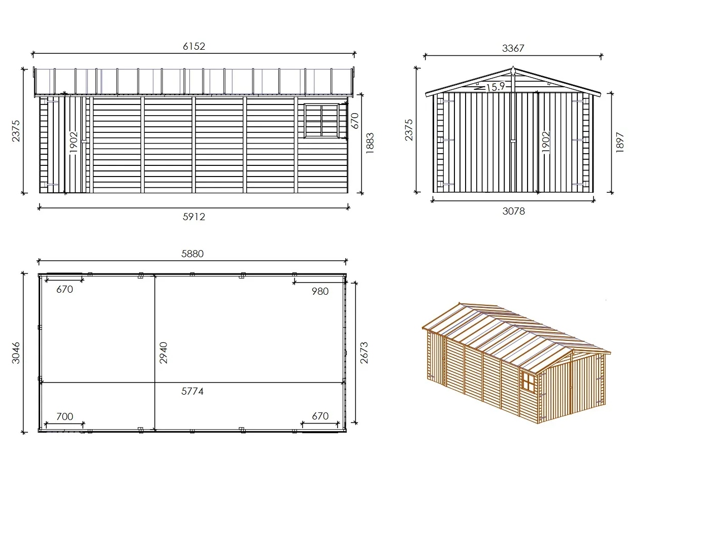 - Pente toiture: 15.9