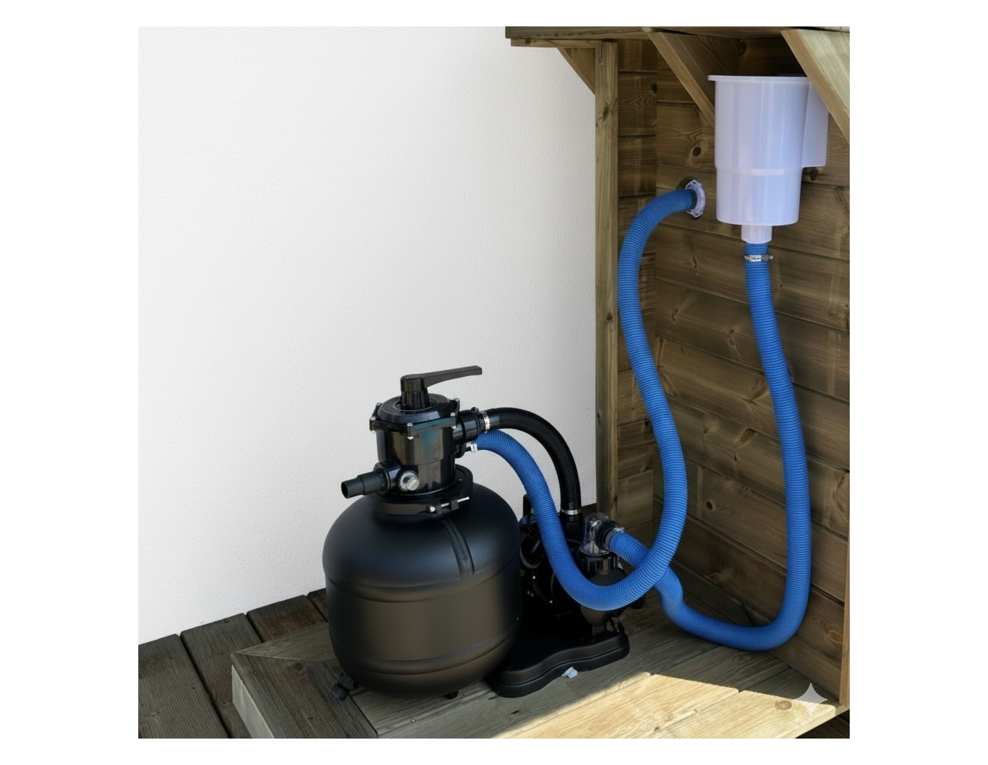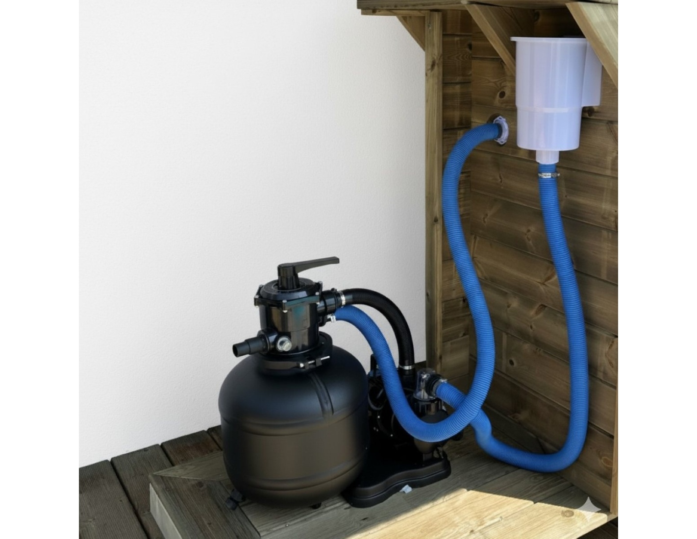 Le système de filtration comprend un filtre à sable et une pompe, garantissant une eau propre et claire dans votre piscine de jardin.