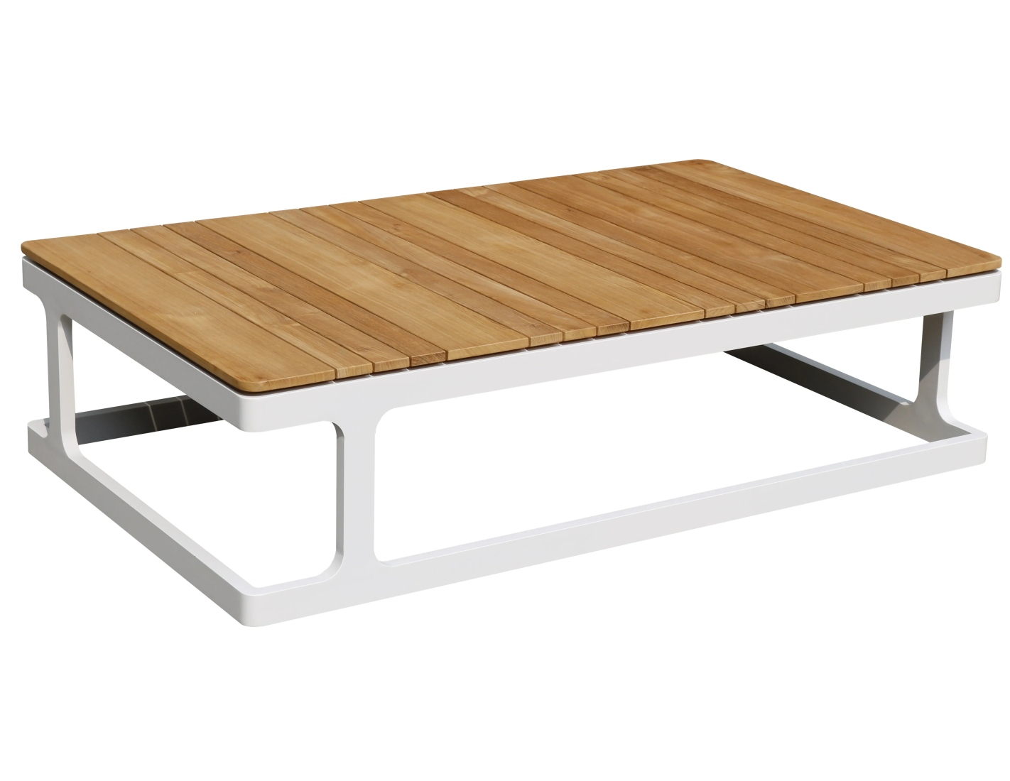 Cadre léger en aluminium peint en poudre de couleur blanche RAL9010. Bois de teck d'une épaisseur de 18 mm.