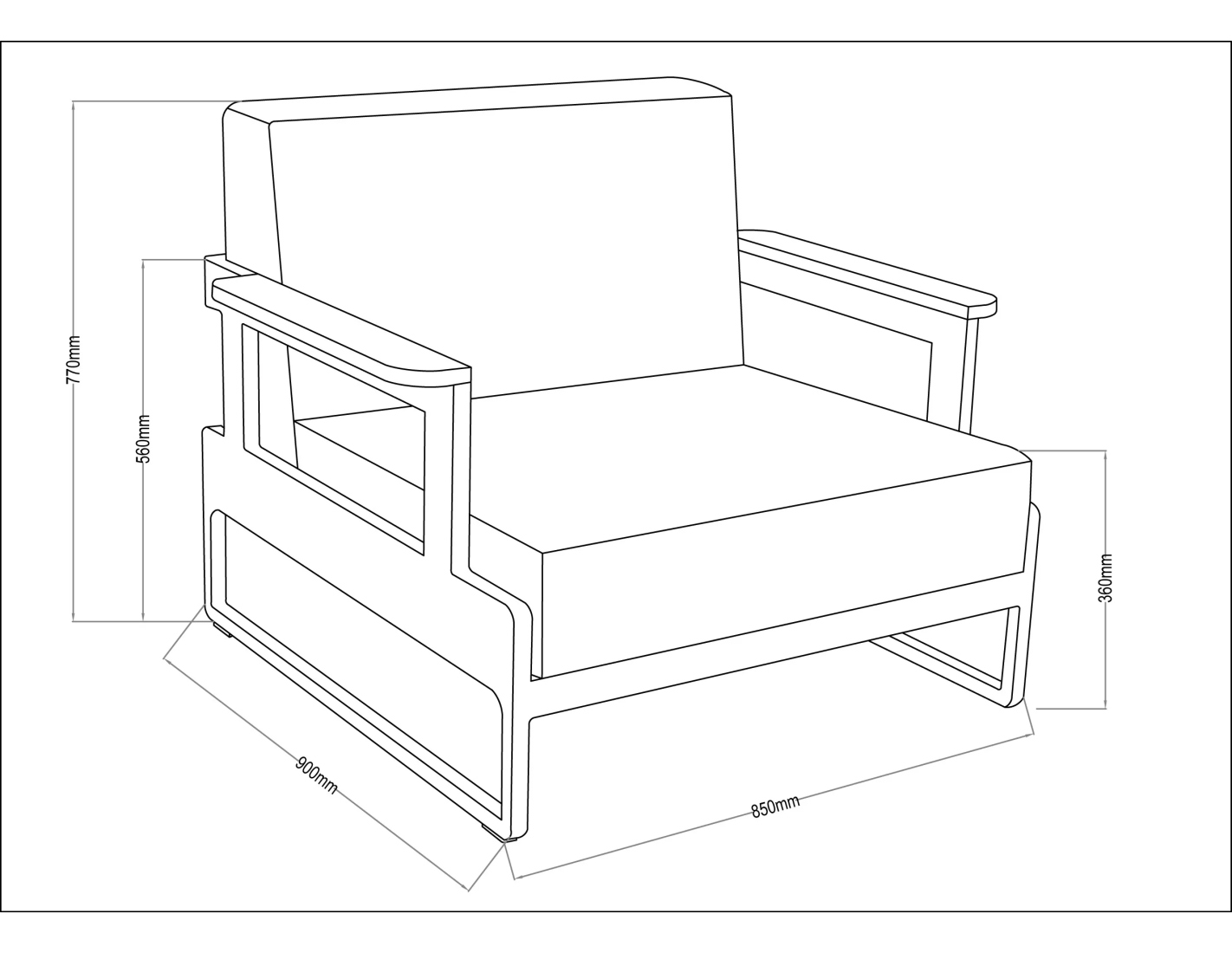 Fauteuil aux dimensions totales de 90x85xH.77 cm.