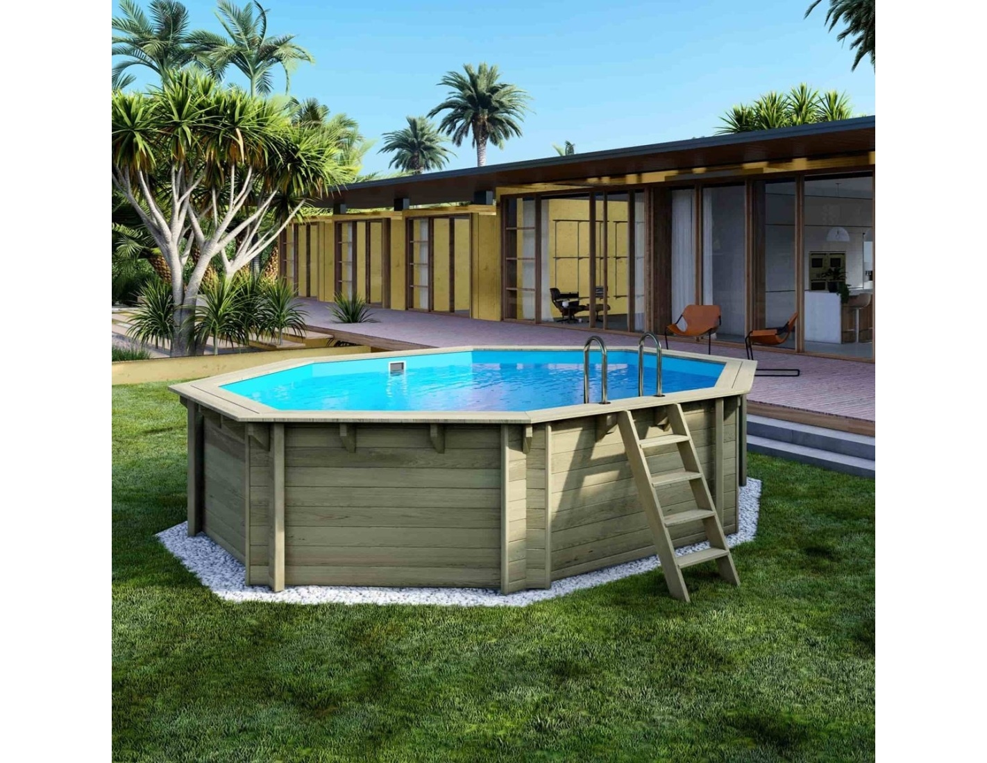 Le bois apporte à l’environnement une touche élégante et chaleureuse, et son aspect classique permet à la piscine de s’intégrer harmonieusement dans tout type de jardin. Vous pouvez ajouter des terrasses en bois, des plantes ou un éclairage décoratif afin de créer une atmosphère véritablement conviviale.