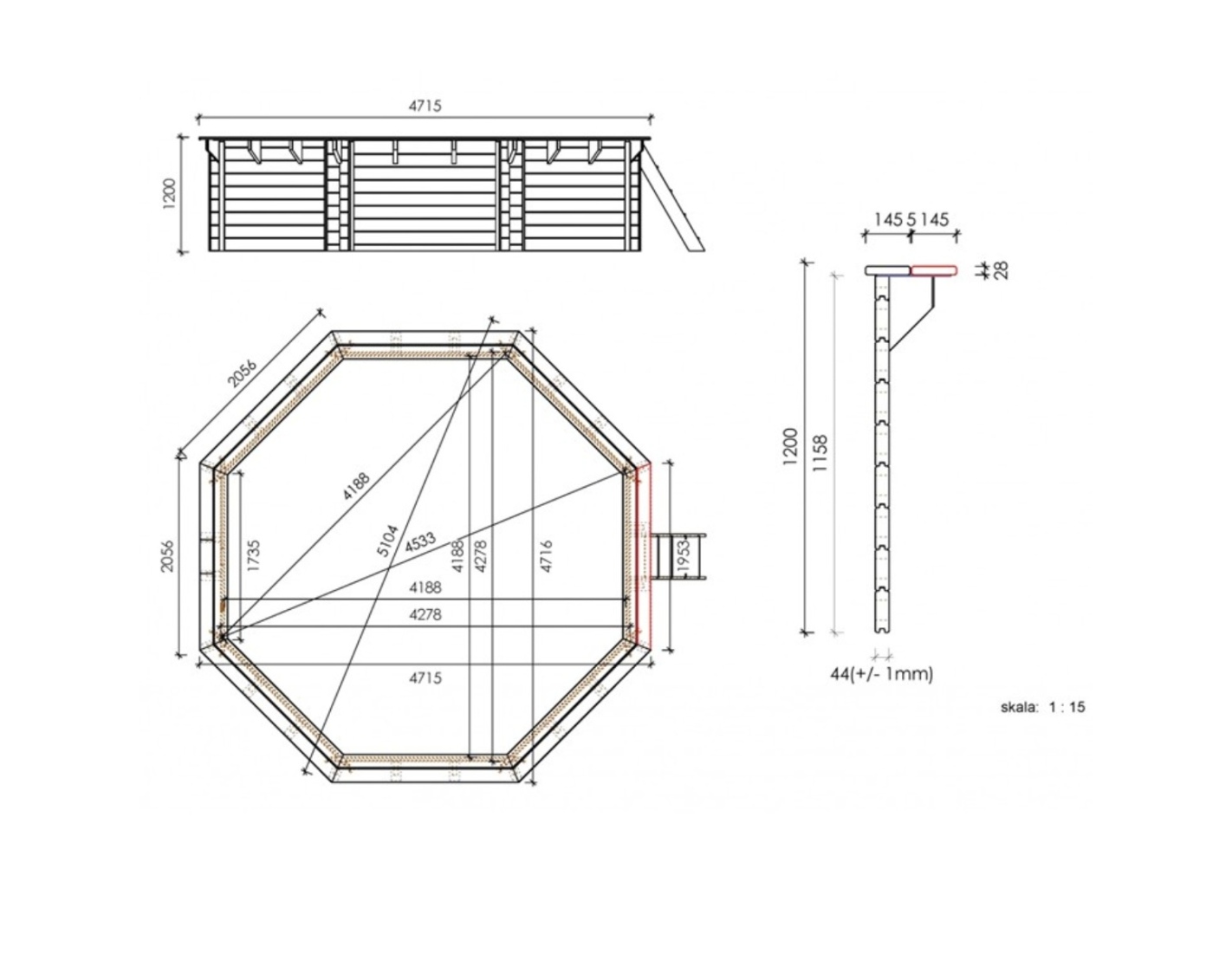 La piscine est fabriquée en bois de pin imprégné qui, en plus de son esthétique, grâce au processus d’imprégnation :