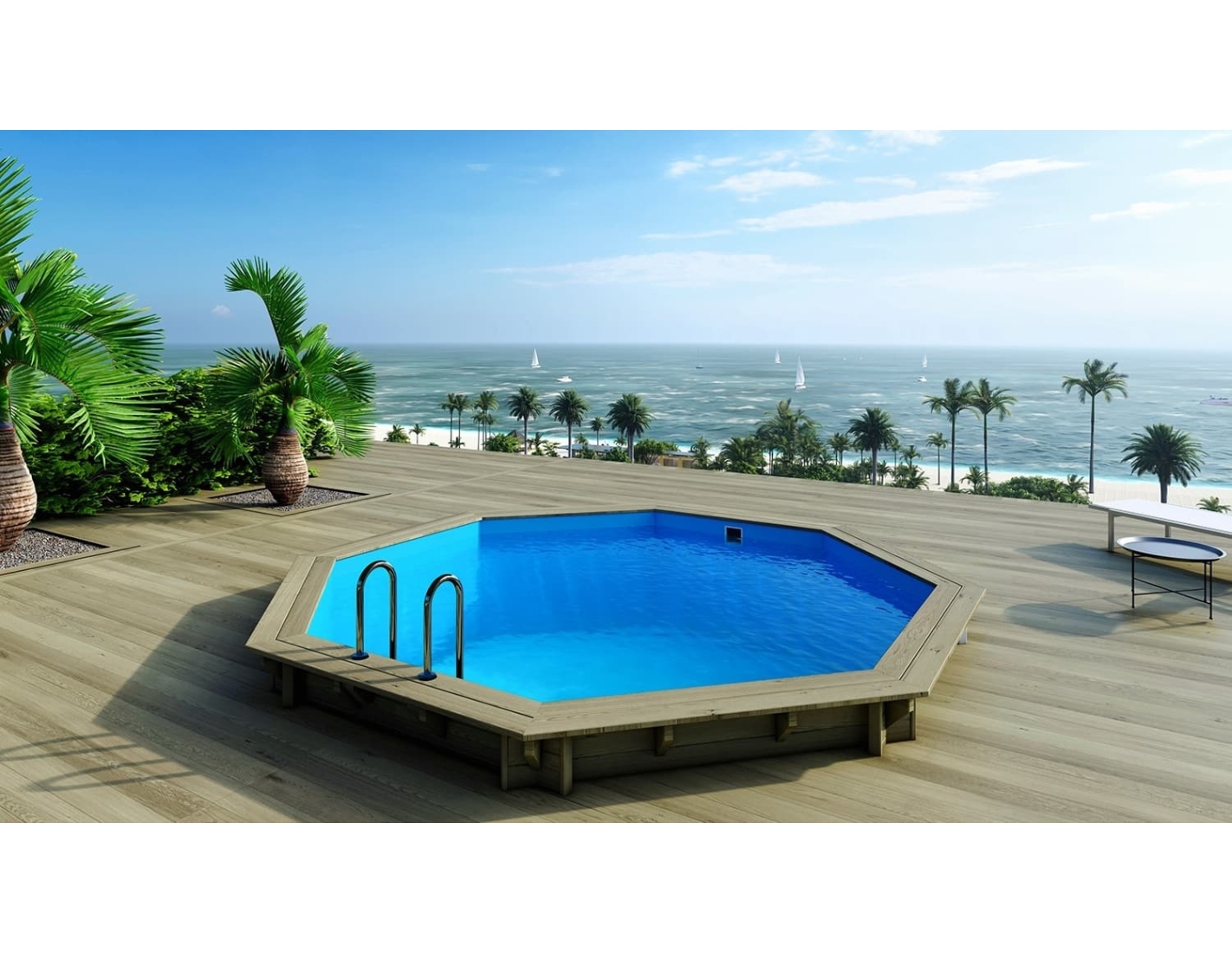 Le bois apporte à l’environnement une touche élégante et chaleureuse, et son aspect classique permet à la piscine de s’intégrer harmonieusement dans tout type de jardin. Vous pouvez ajouter des terrasses en bois, des plantes ou un éclairage décoratif afin de créer une atmosphère véritablement conviviale.