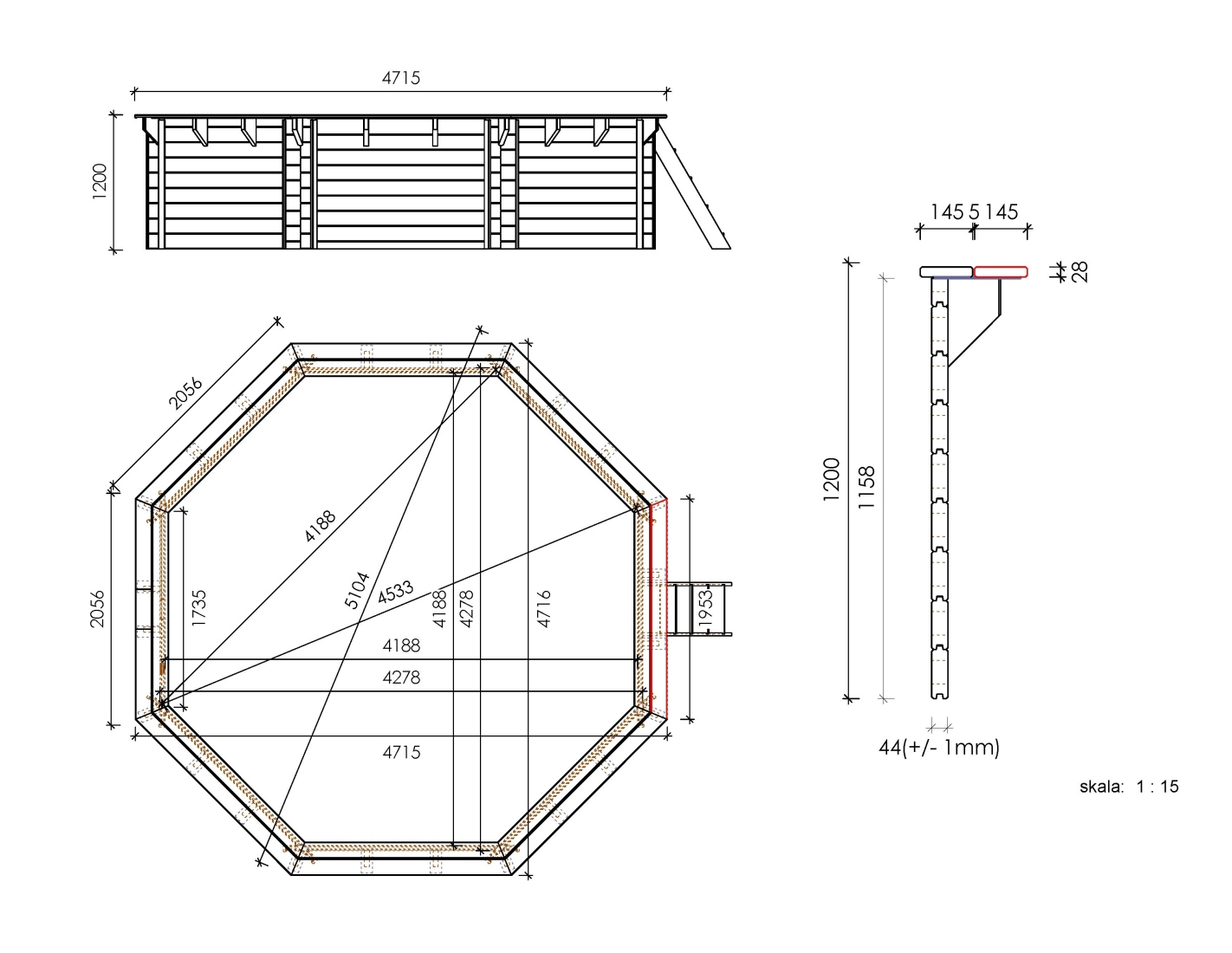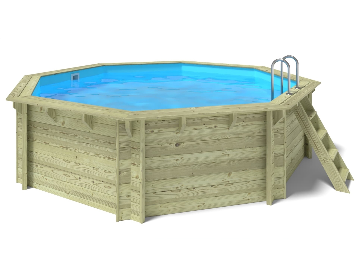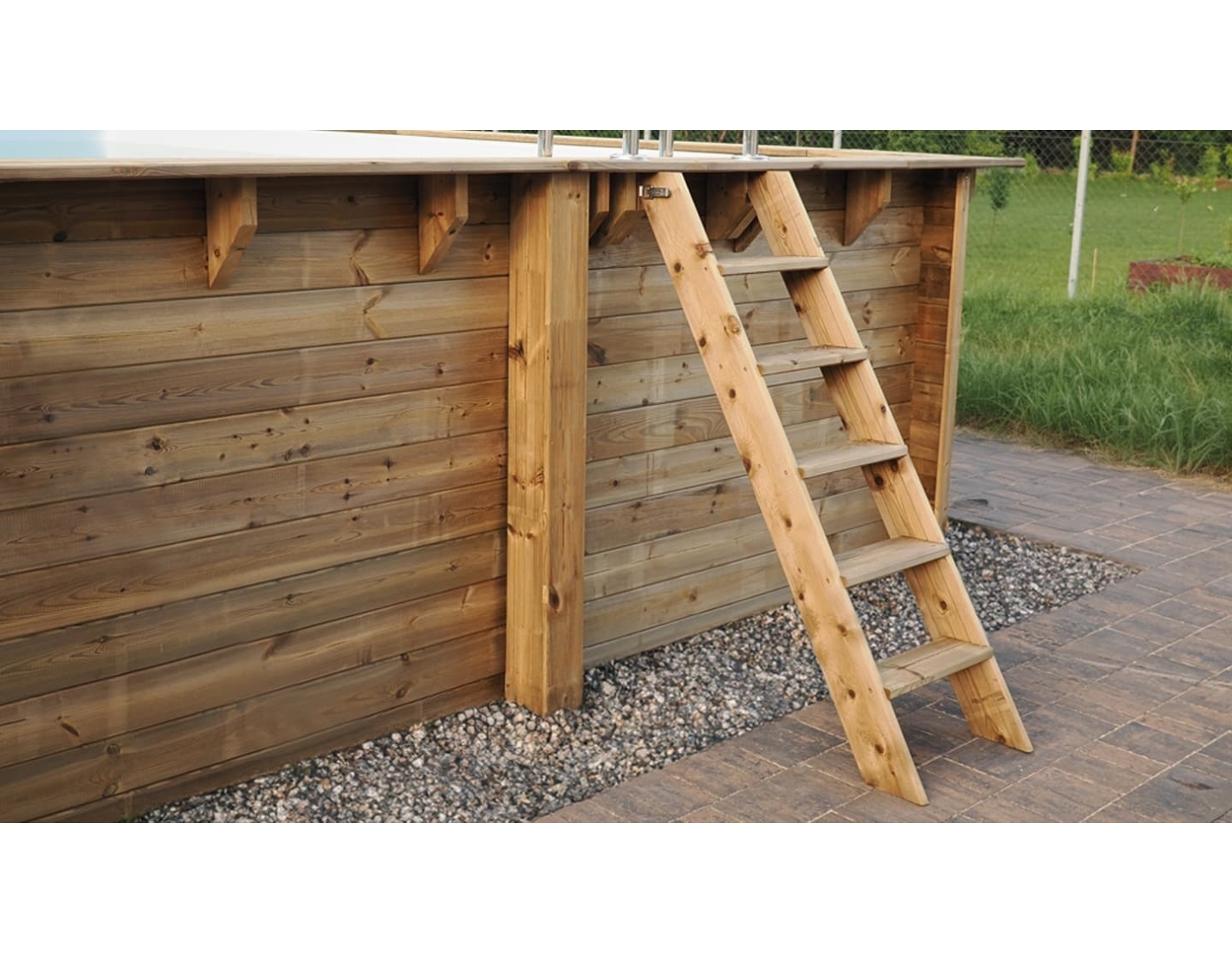 La piscine est fabriquée en bois de pin imprégné qui, en plus de son esthétique, grâce au processus d’imprégnation :